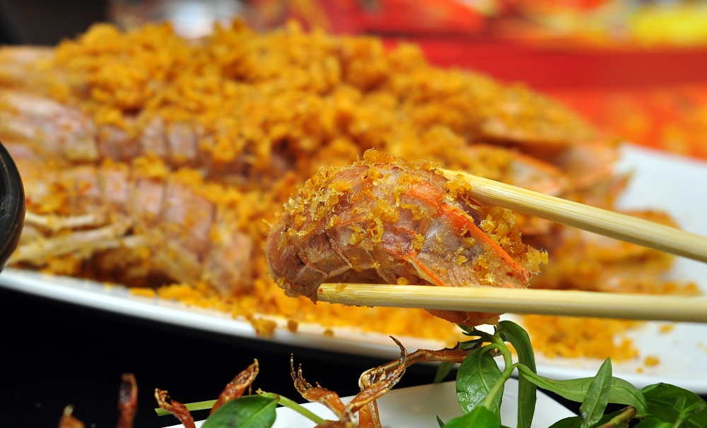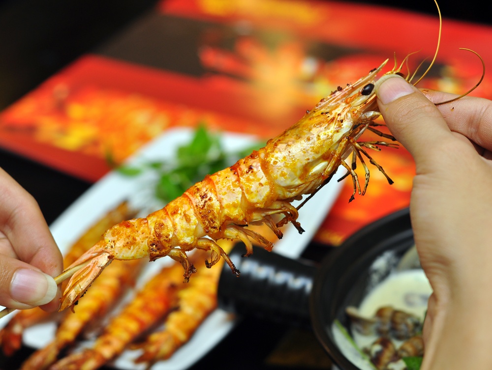 | Tôm nướng cũng là món tủ theo như lời chủ nhà hàng giới thiệu. Tôm nướng sa tế khiến khách phải xuýt xoa vì vị cay đậm đà. Món ăn quen thuộc song không bao giờ chán với những ai ghiền hải sản, nhất là khi tôm to, tươi rói, thịt ngọt, chắc. |