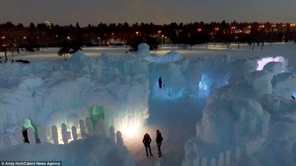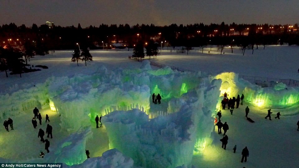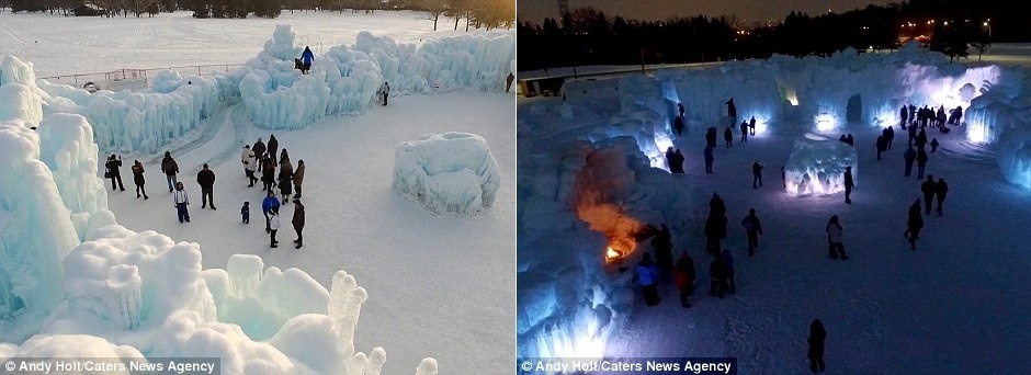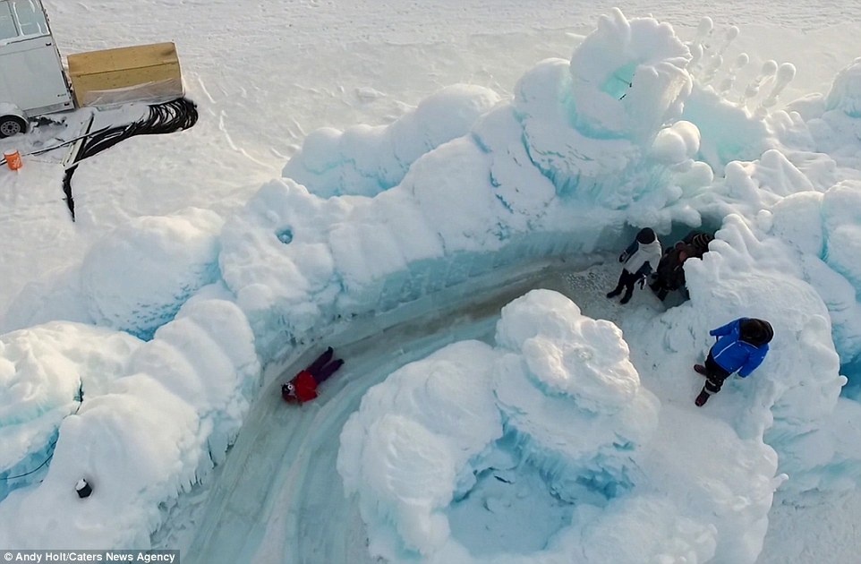 Lâu đài lộng lẫy này do công ty Ice Castles của Mỹ thiết kế và xây dựng. |