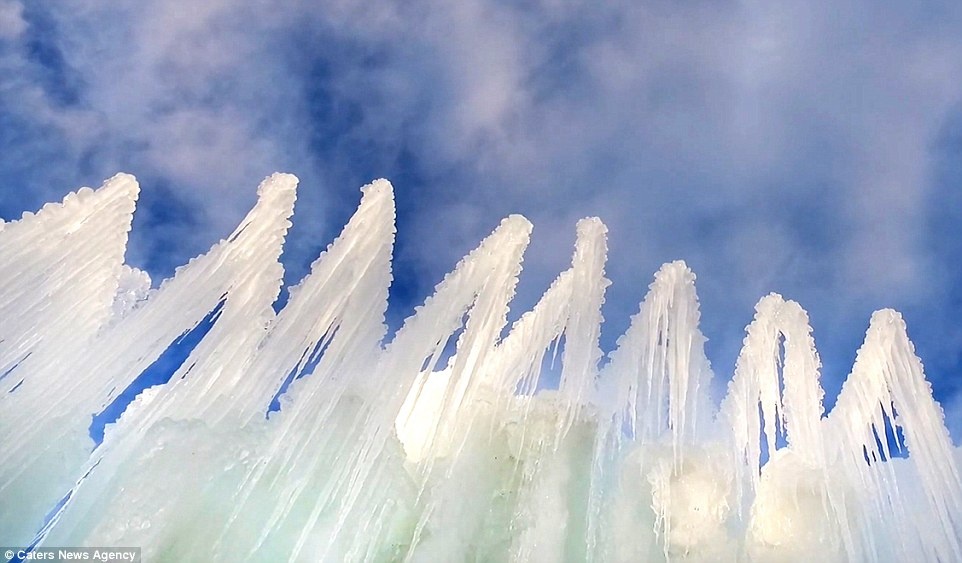 Hàng nghìn cột băng được tạc và tạo hình thủ công. |