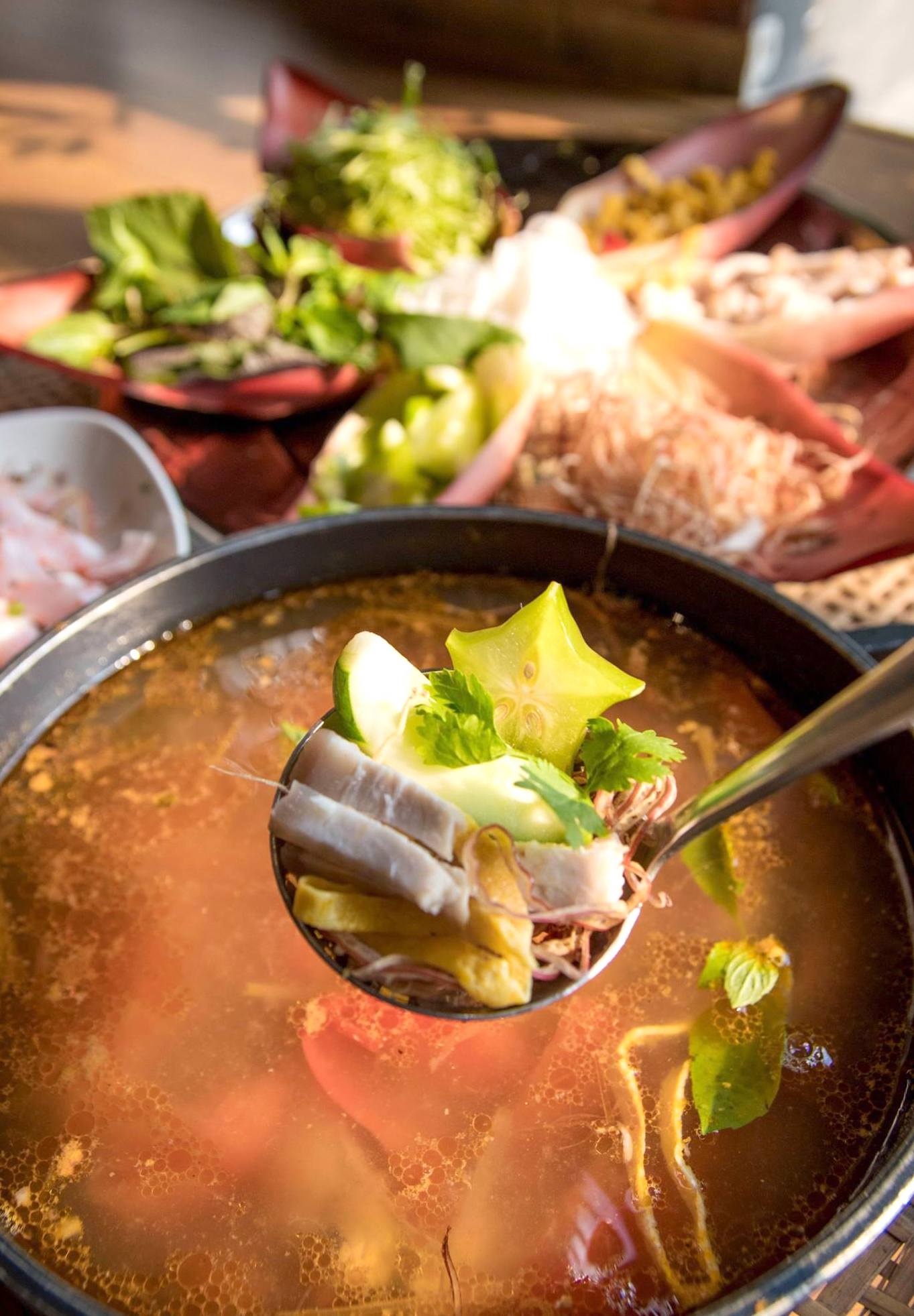 | Ngoài nước lẩu thơm ngon, món ăn này còn chinh phục tín đồ ẩm thực bởi phần thịt cá béo, mềm và ngọt. Bạn thưởng thức lẩu cùng hoa chuối, rau đắng, giá đỗ, rau muống chẻ... và nước mắm me để cảm nhận sự hoà quyện thú vị. Ảnh: Hanhdung2105. |