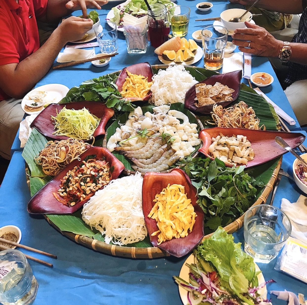 Lẩu thả là đặc sản của Phan Thiết (Bình Thuận). Đây là món ăn được làm từ những nguyên liệu dân dã, dễ kiếm. Thành phần thường gồm bún tươi, bánh tráng nướng, nước mắm pha sệt, thịt ba chỉ, tôm, trứng, dưa leo, rau thơm, hành, xoài... Nước dùng lẩu được nấu từ xương heo. Đặc biệt, lẩu thả không thể thiếu cá mai, cá đục hoặc cá suốt được làm chín tái với chanh để khử mùi tanh. Ảnh: Thienchoco.cat. |