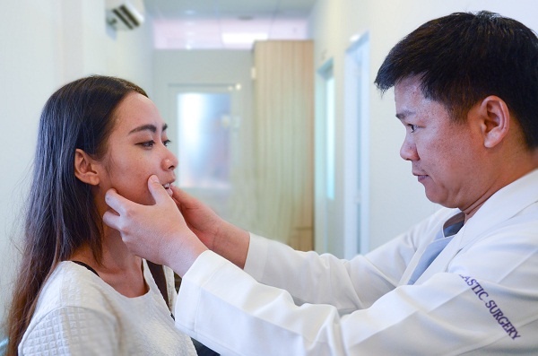 | Bác sĩ Tú Dung tái khám cho Đặng Vân sau một tuần phẫu thuật hàm hô. |