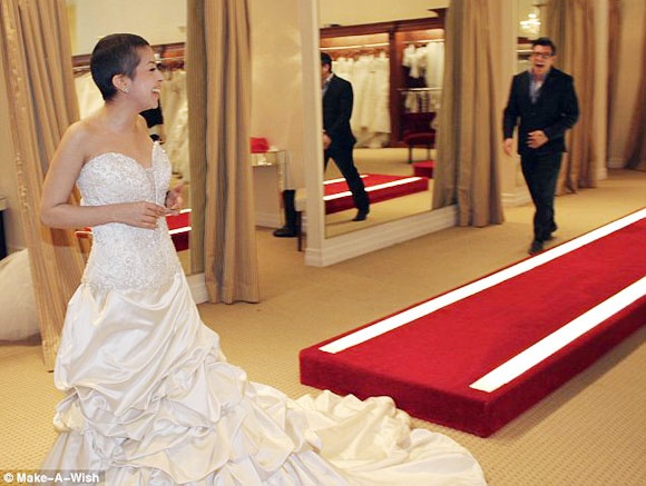 | Leslie đã nhiều đêm ao ước được một lần khoác lên mình bộ váy cô dâu và kết hôn với chàng trai của đời mình. Và điều ước đó đã trở thành hiện thực vào ngày 21/11 vừa qua nhờ sự giúp đỡ của tổ chức từ thiện mang tên Make-A-Wish Foundation. |