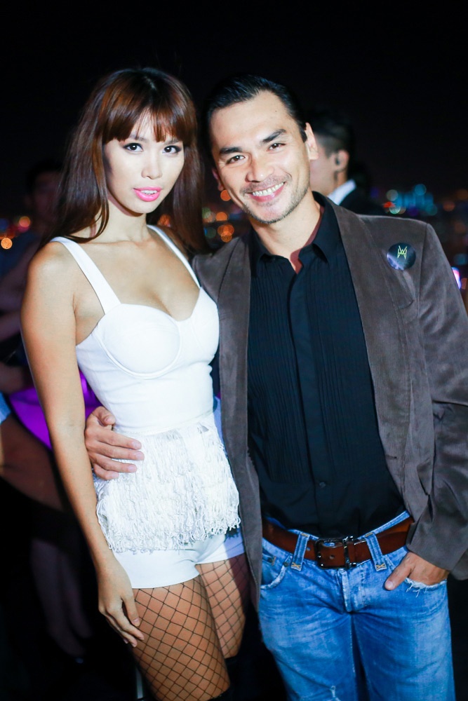 | Người đẹp chụp hình cùng người mẫu Hồ Đức Vĩnh. Trong đêm trình diễn, Hà Anh liên tục thay đổi những bộ cánh thời trang bắt mắt và cá tính được đo ni đóng giày riêng dành cho cô bởi NTK Kelly Bùi và Nguyễn Hà Nhật Huy. |