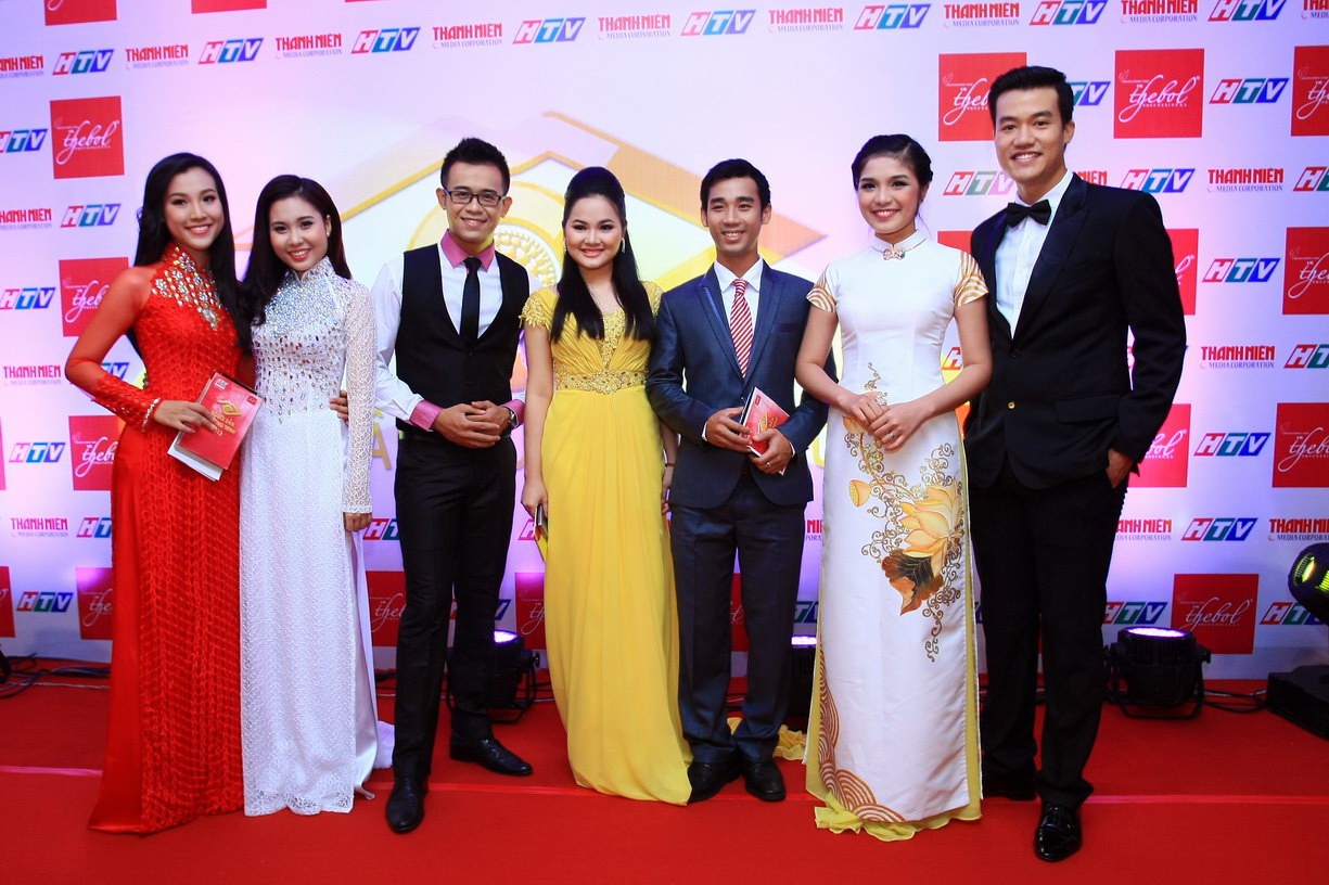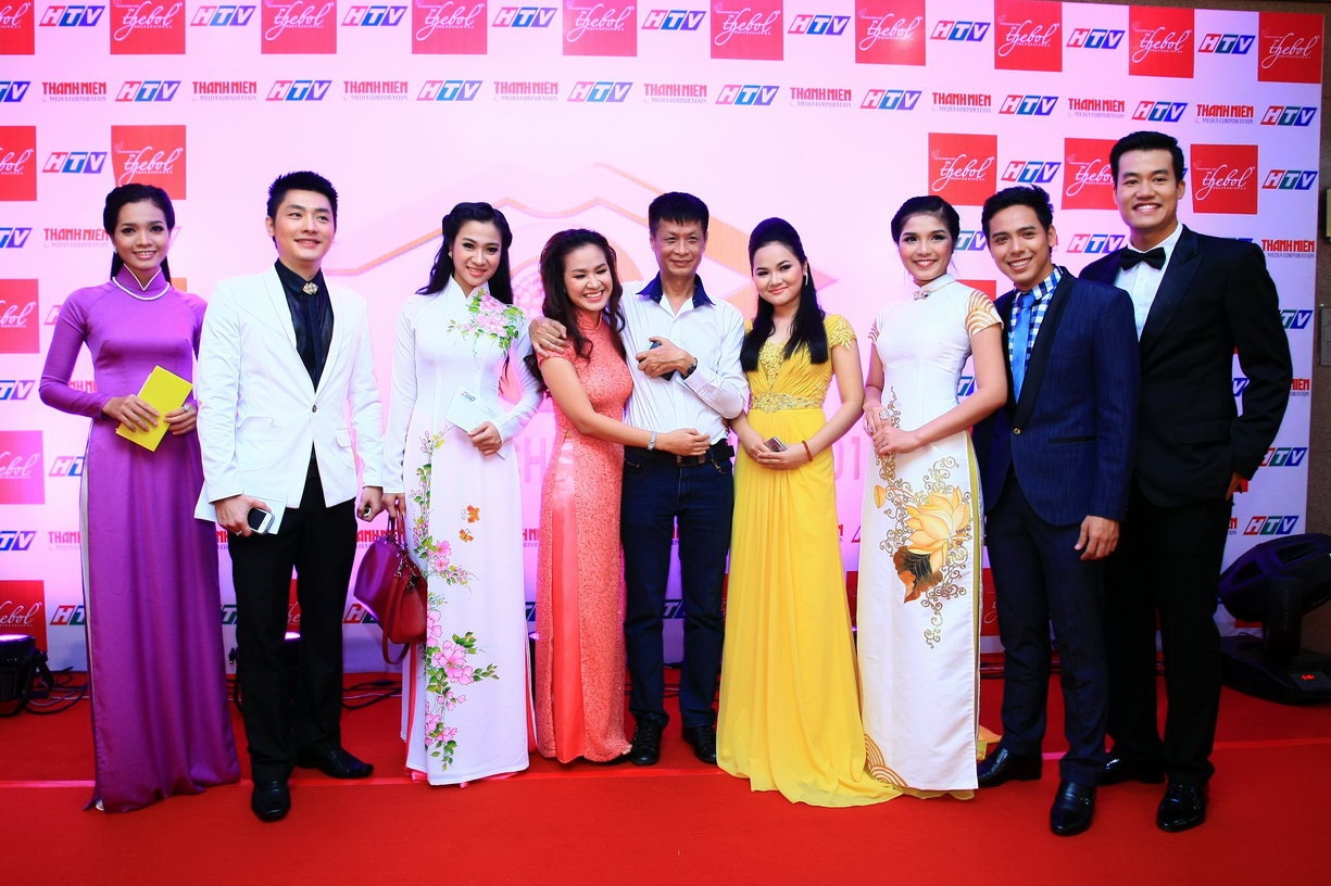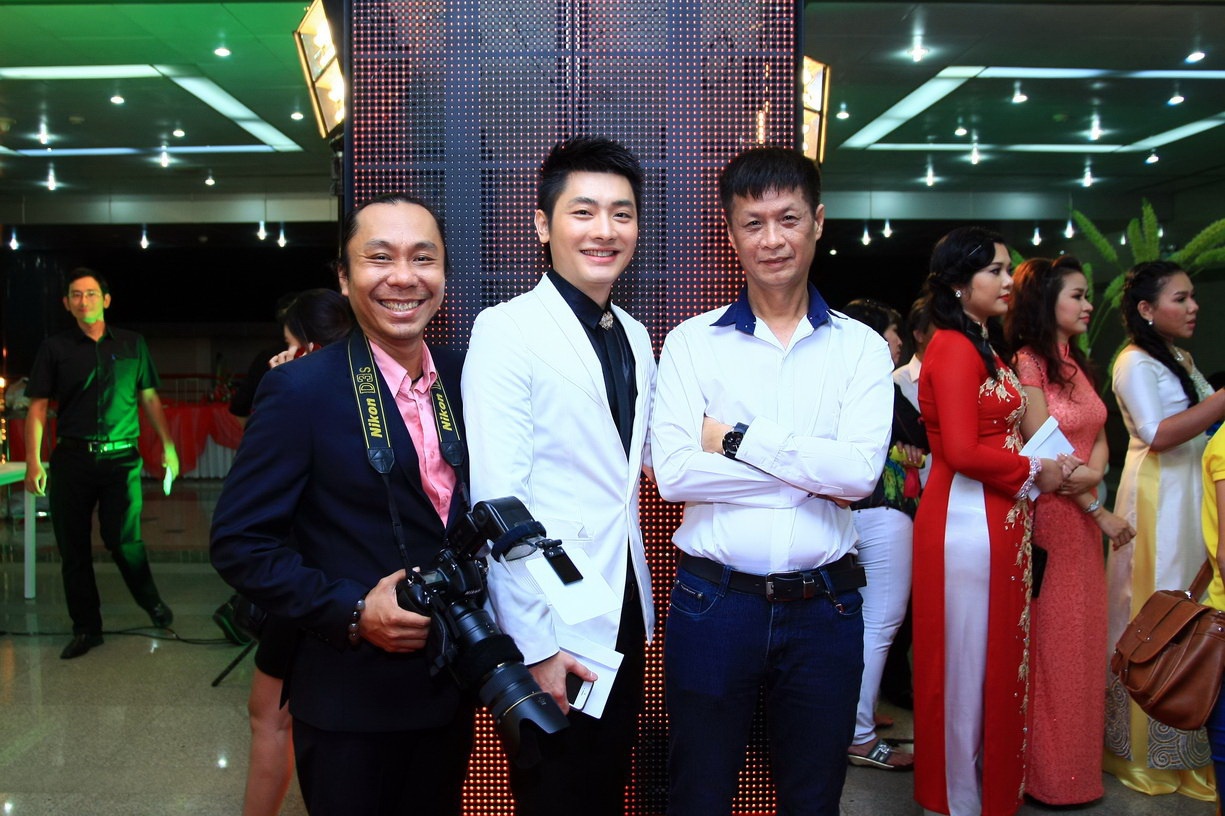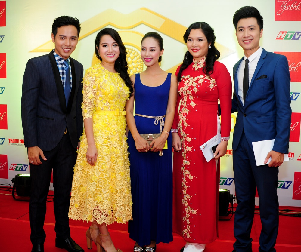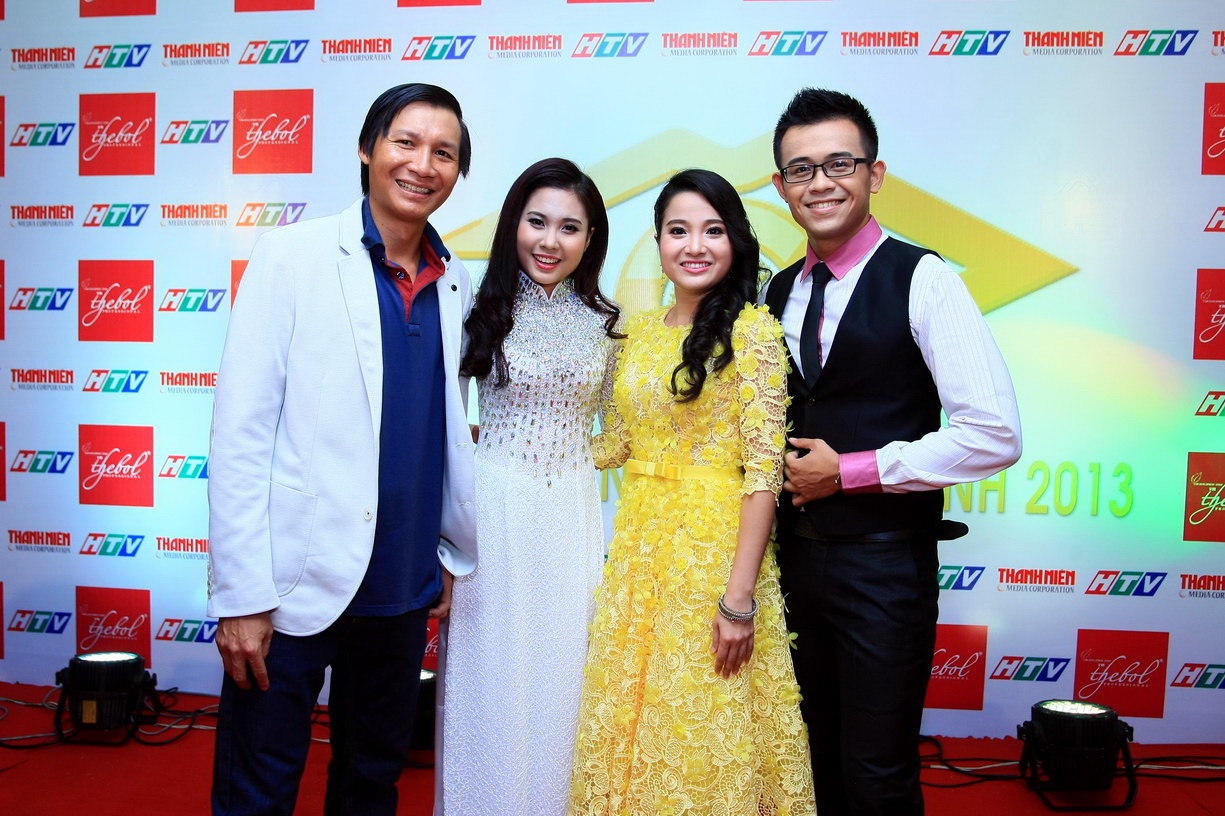 Đức Bảo, Tú Trinh chụp ảnh cùng MC Hồng Phượng và đạo diễn Vũ Thành Vinh. |