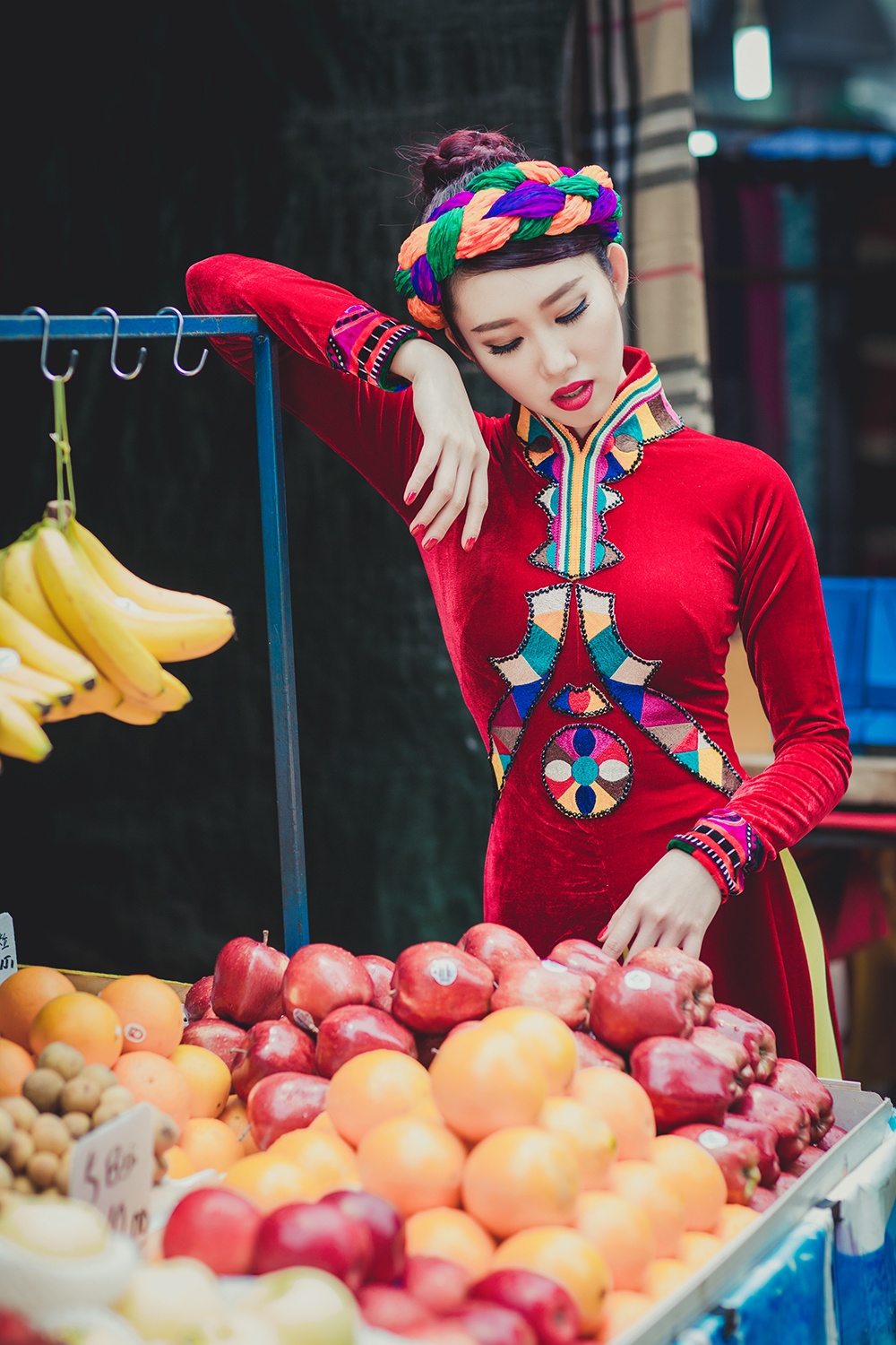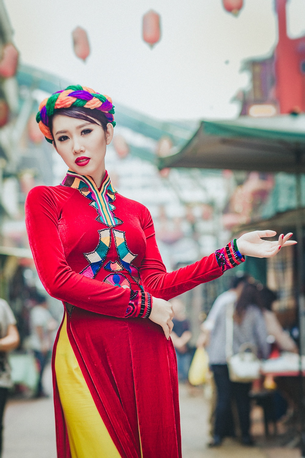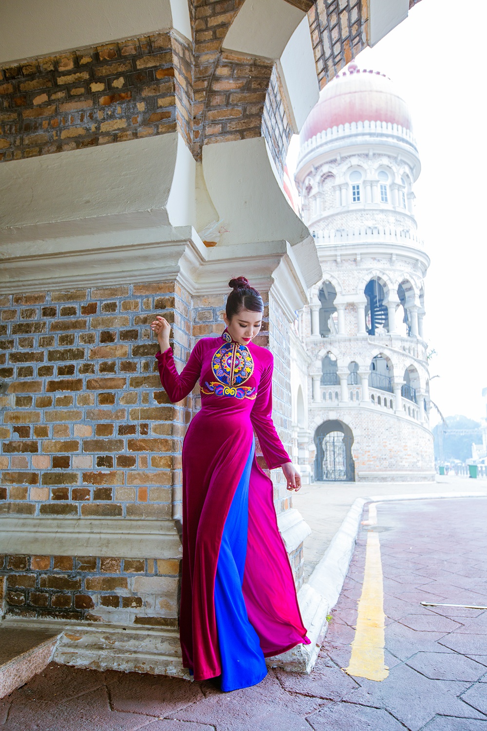 | Nhà thiết kế tin tưởng, mùa đông phụ nữ thường sợ lạnh khi diện áo dài, nhưng với áo dài nhung, phụ nữ có thể giữ ấm và khoe được sự trẻ trung, quyến rũ . |