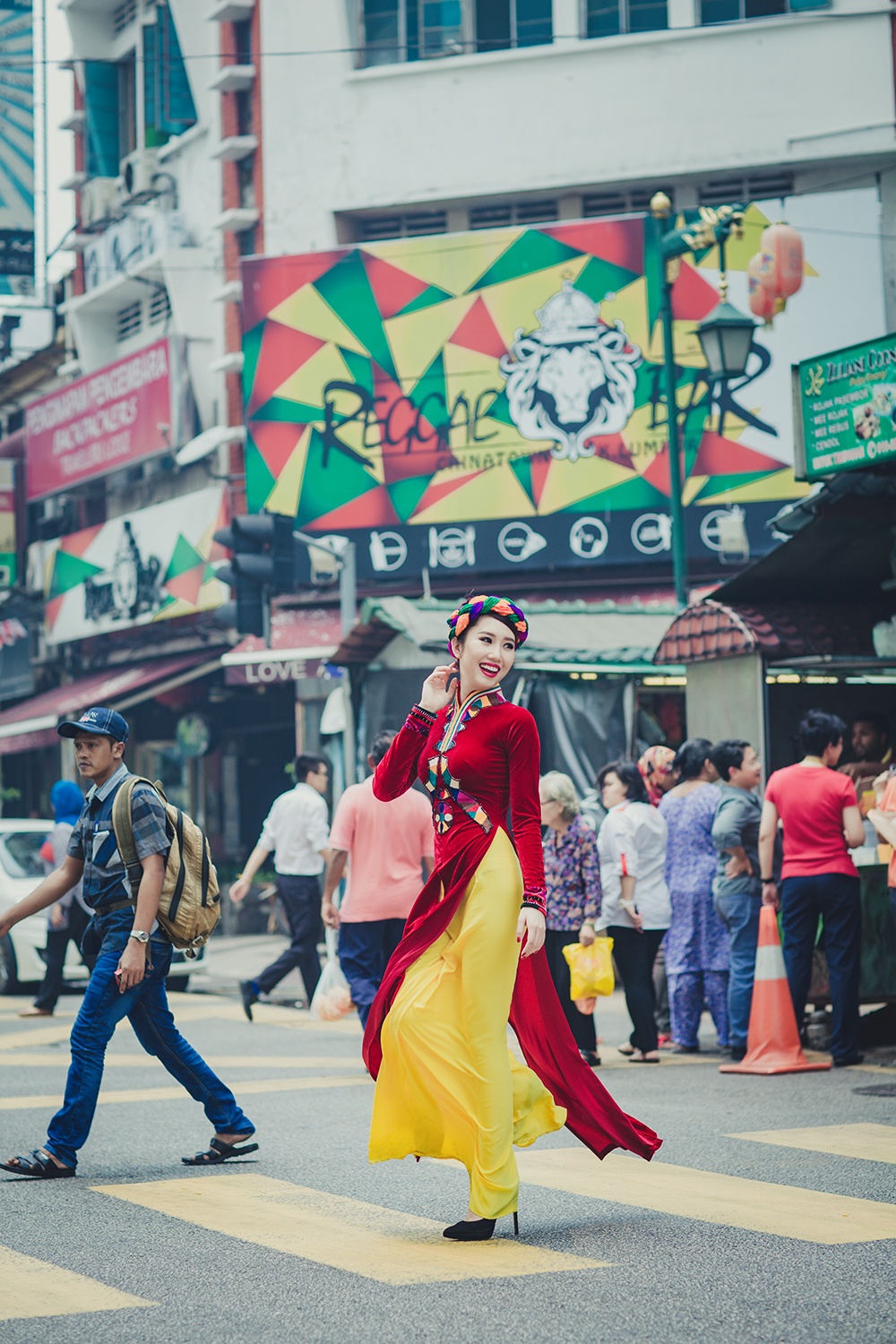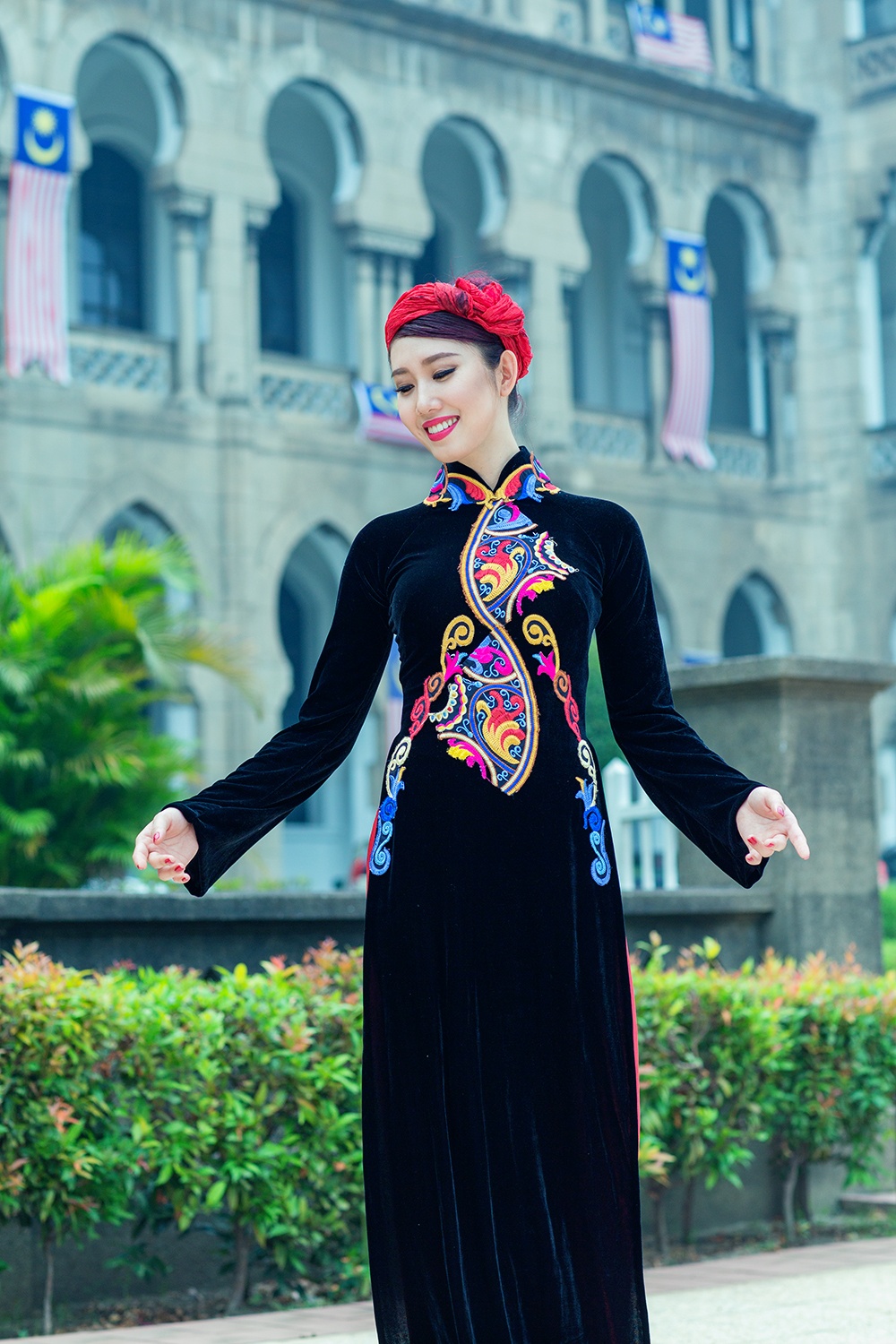| Cách kết hợp hài hòa này sẽ giúp các quý cô khi diện áo dài nhung vẫn trẻ trung và thanh lịch. |