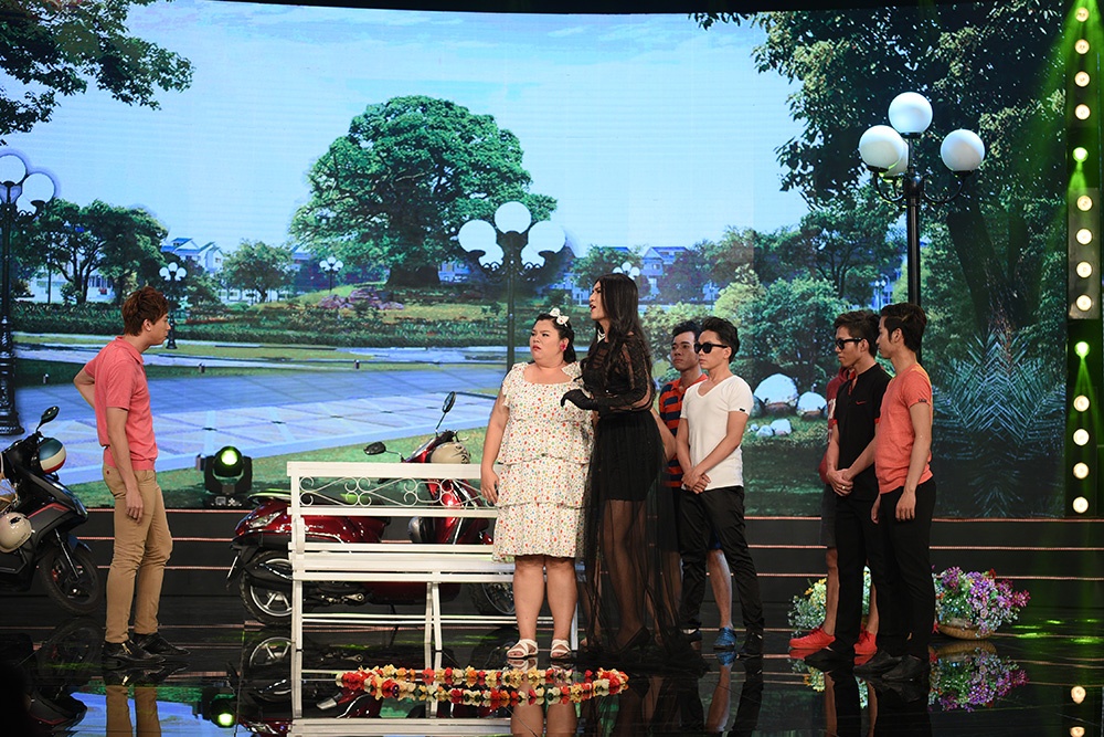 Trong nhạc cảnh Chuyện hẹn hò, Tuyền Mập “hô biến” ngoại hình mũm mĩm trở thành hot girl mình dây đi lừa tình trên mạng. Dưới sự giúp đỡ của “Ác phụ áo đen” BB Trần, cả 2 đã thực hiện cú lừa ngoạn mục khiến Hồ Việt Trung phải hy sinh đời trai. |