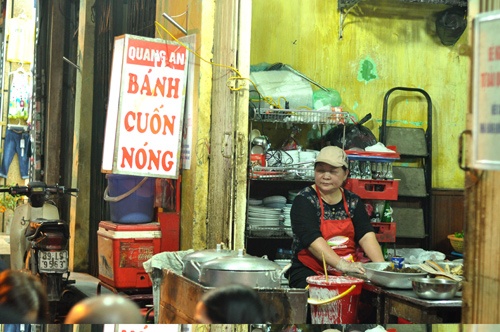 Không quá đông đúc nhưng ở Hàng Bồ có một tiệm bánh cuốn rất đáng để bạn thưởng thức. Đây là tiệm gia truyền đã có thâm niên hơn 20 năm, chỉ bán vào các buổi tối. Giống như những địa chỉ trên, nhược điểm ở đây là không gian chật chội, tuềnh toàng, thậm chí tối tăm đúng chất phố cổ, song bánh cuốn thì làm mọi người rất hài lòng.
