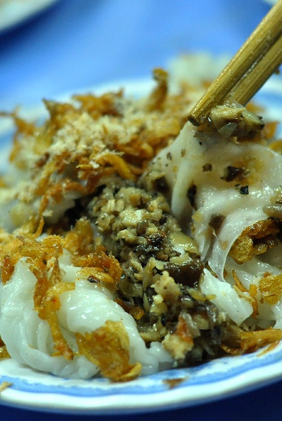 | Bánh cuốn ở đây hầu như không có hàn the và nhân bánh khá đầy đặn. |