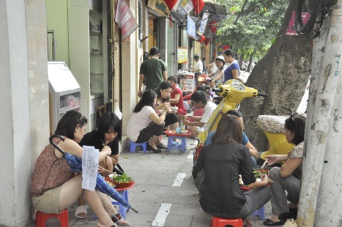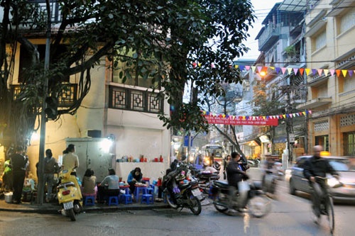 | Giờ quán đã đĩnh đạc ở đúng ngã tư Hàng Bồ với Hàng Thiếc. |