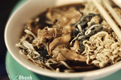 | Đặc sản của quán là mỳ tôm kết hợp với gà tần thuốc Bắc. |