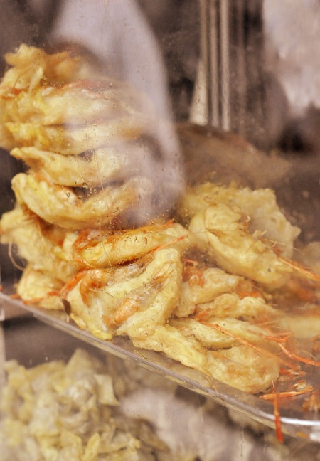 Nói bánh tôm với há cảo ở đây cực ngon thì không đúng. Từ bột bánh, nhân bánh cho đến nước chấm, người sành miệng có lẽ chỉ đánh giá dễ ăn và cho không quá điểm 7. Tuy nhiên, quán hút khách vì giá rẻ hiếm có ở khu phố cổ. Cách đây 4-5 năm, há cảo chiên nơi này bán 9.000 đồng/chục cái, còn bánh tôm là 4.500 đồng/chiếc. Đến giờ, nếu tăng giá, chắc vẫn chỉ 5-6 chục nghìn là đôi bạn đã được bữa chiều no nê.