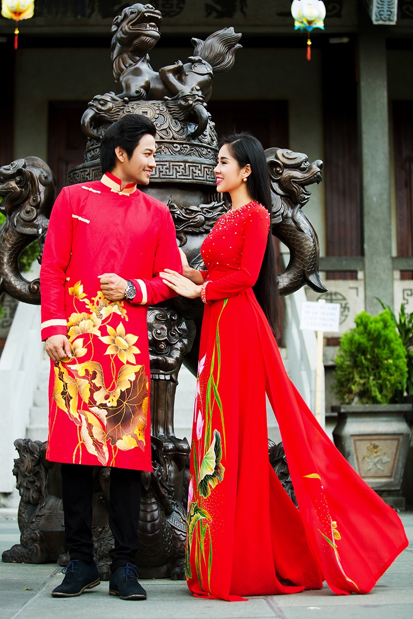 Cặp diễn viên vào vai đôi tình nhân lãng mạn, diện các thiết kế áo dài truyền thống trong bộ ảnh mới.