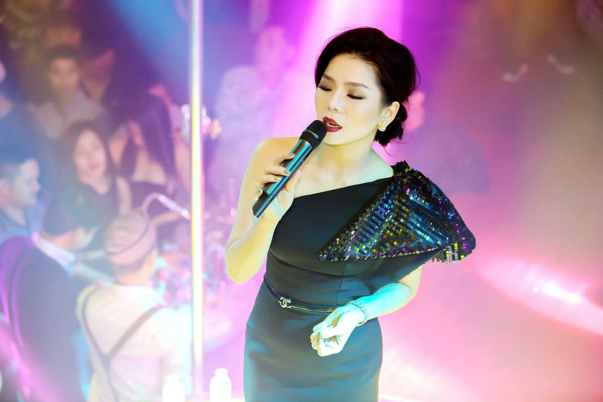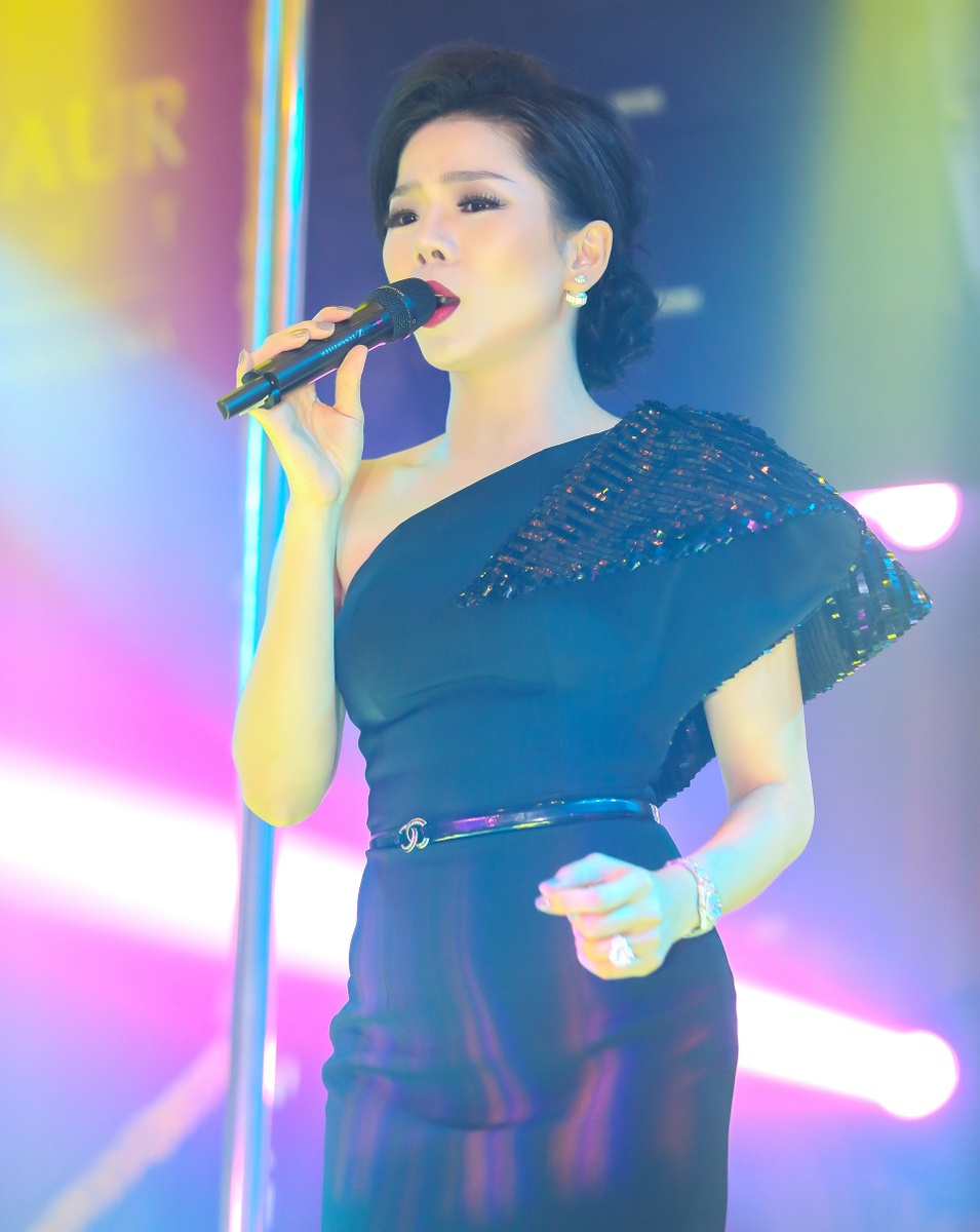 | Trong đêm tiệc tối qua, bà mẹ một con diện đầm đen lệch vai ôm sát cơ thể, khoe vẻ gợi cảm giữa trời mùa đông Hà Nội. |