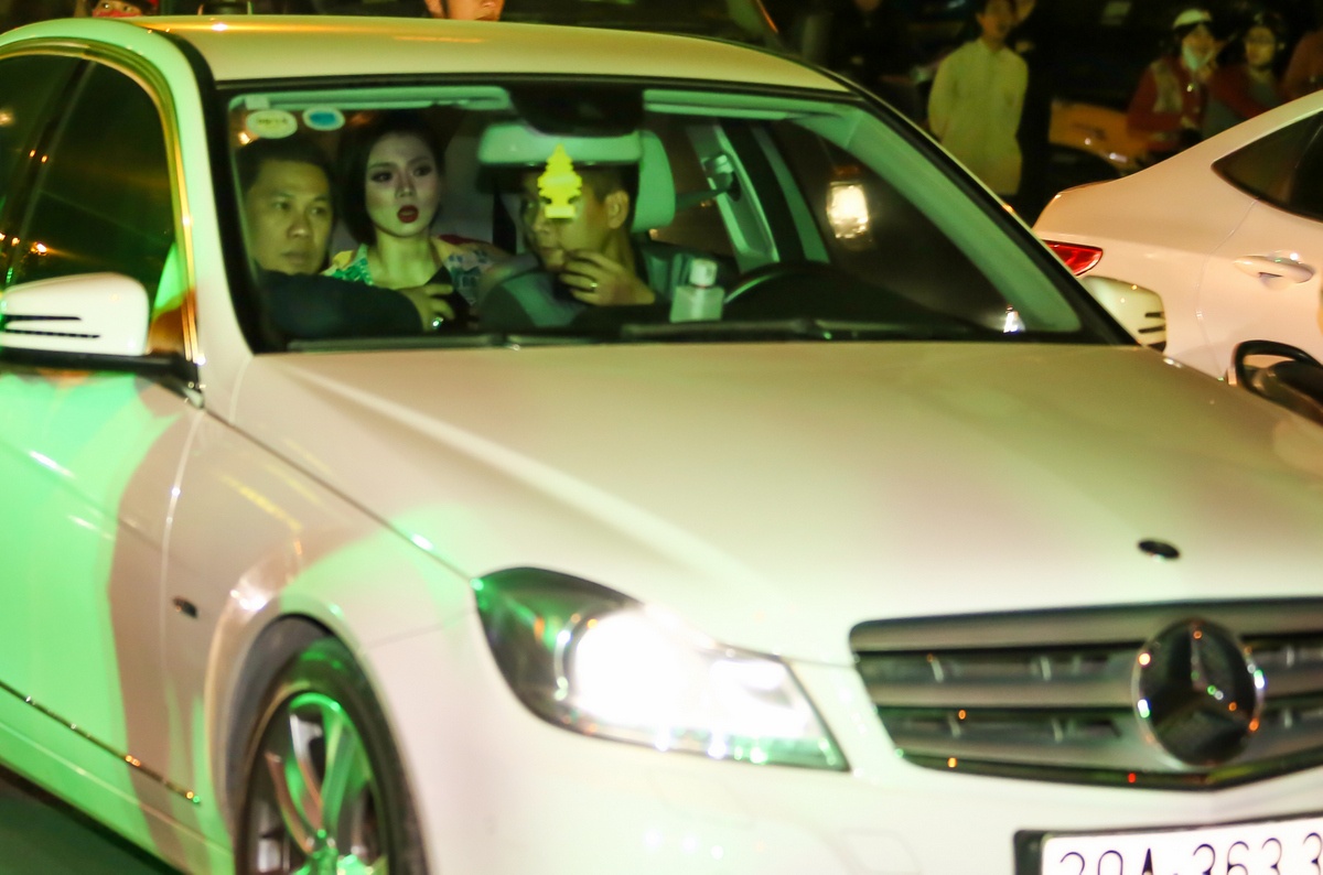 Sau một thời gian dài không ra Thủ đô hát, nữ ca sĩ sinh năm 1981 hạnh phúc khi được ông xã hộ tống tới địa điểm biểu diễn vào tối 26/1.