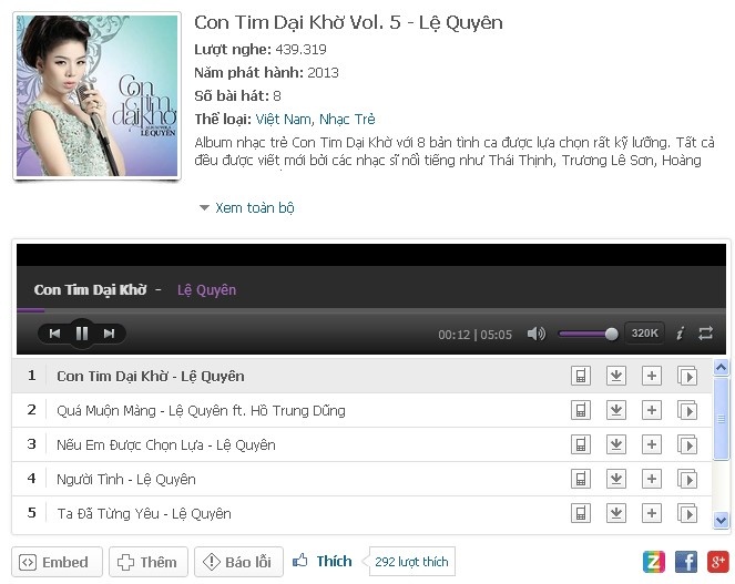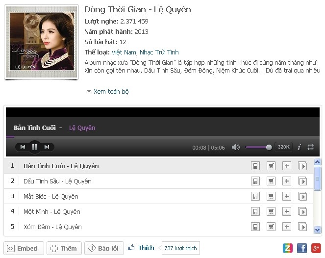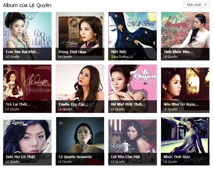 | Các album của Lệ Quyên trên Zing MP3. |