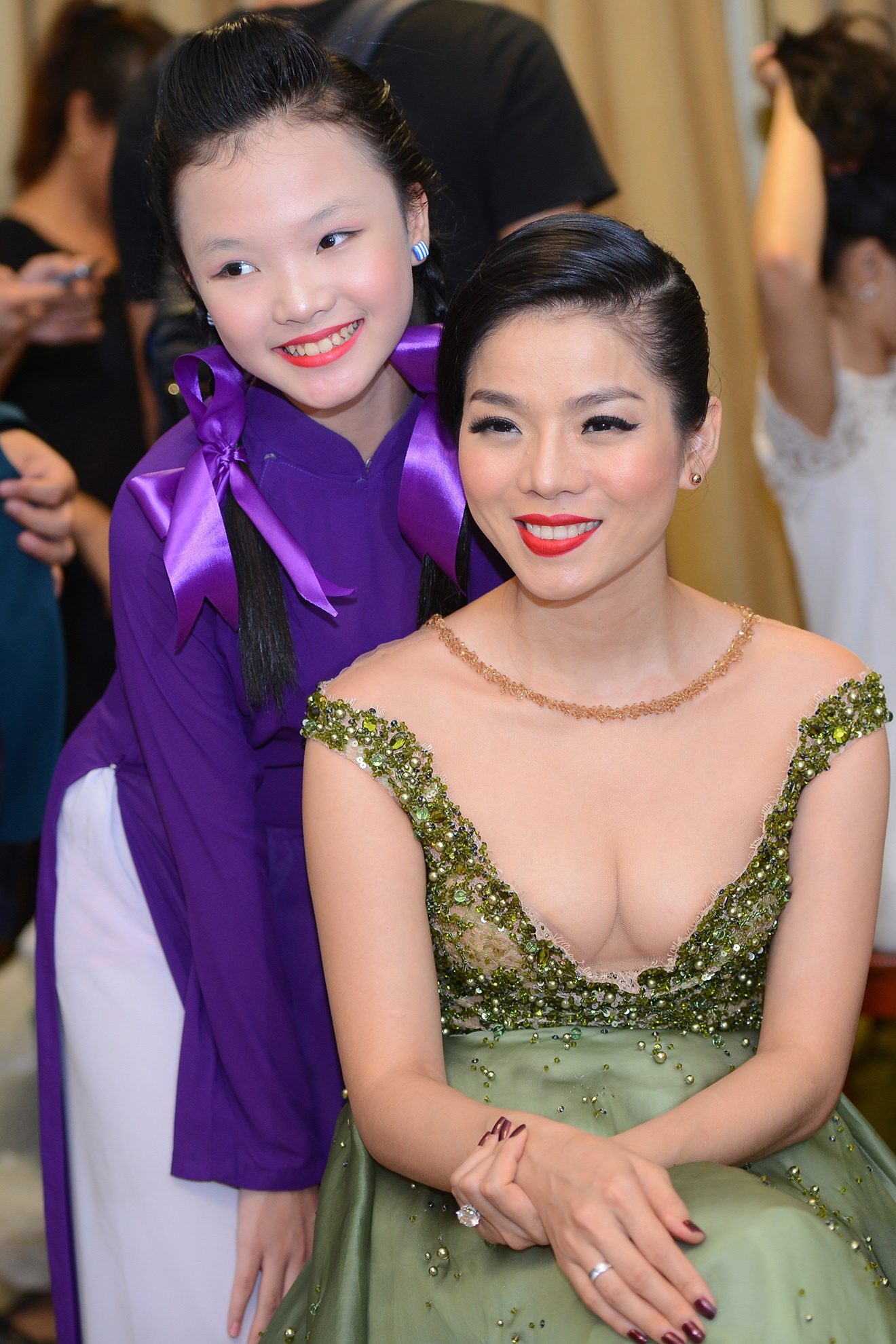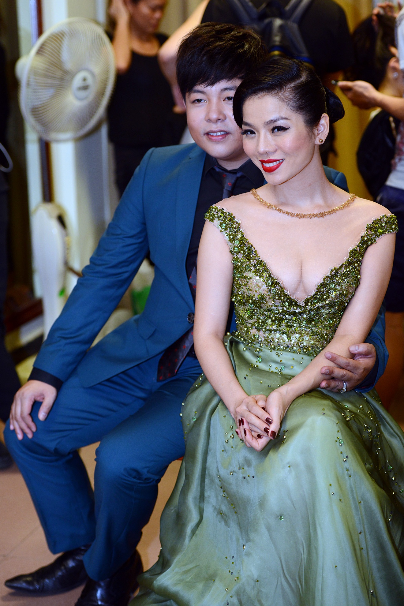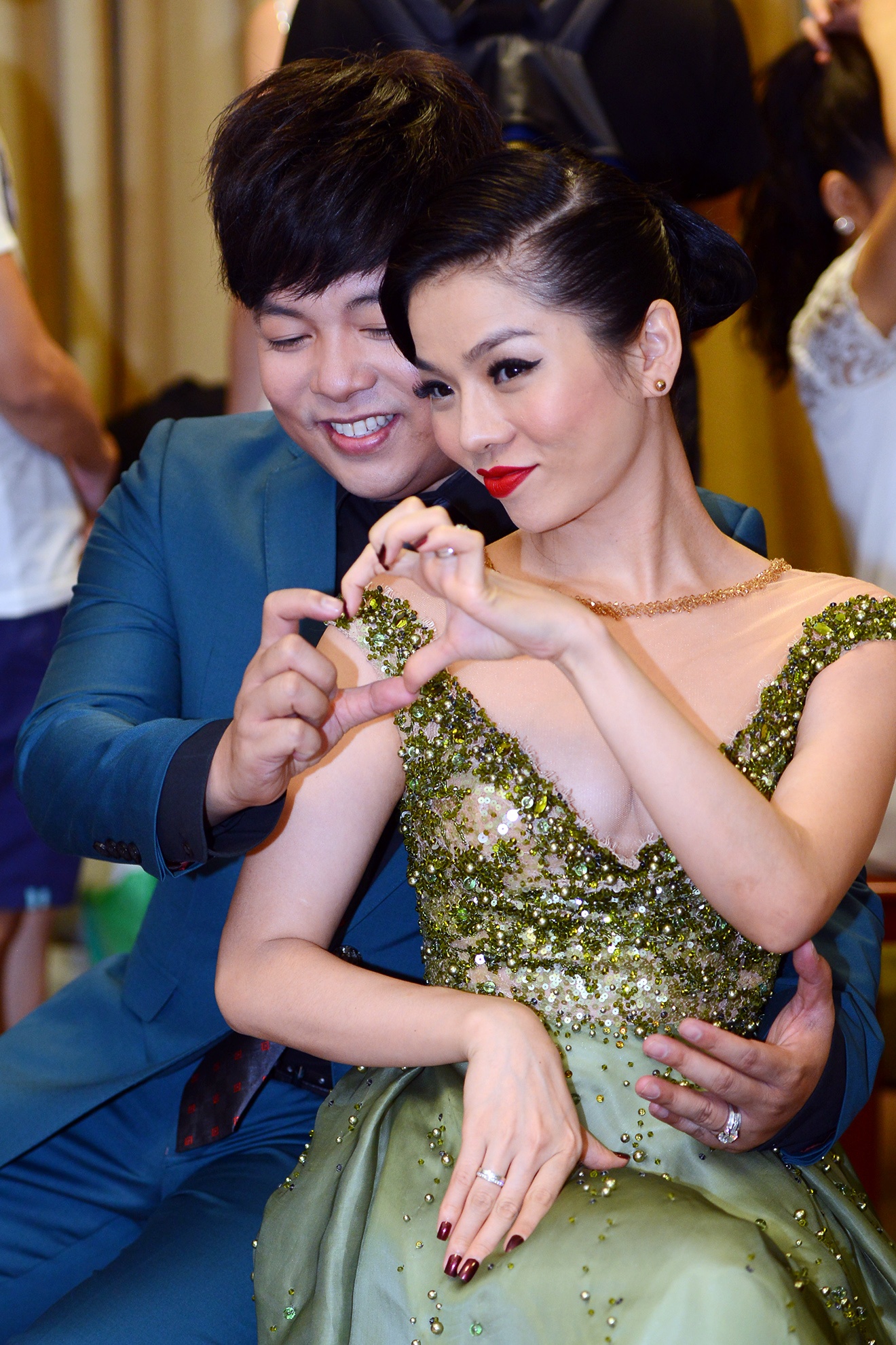 | Trong hậu trường, Quang Lê thể hiện tình cảm thân thiết với Lệ Quyên. |