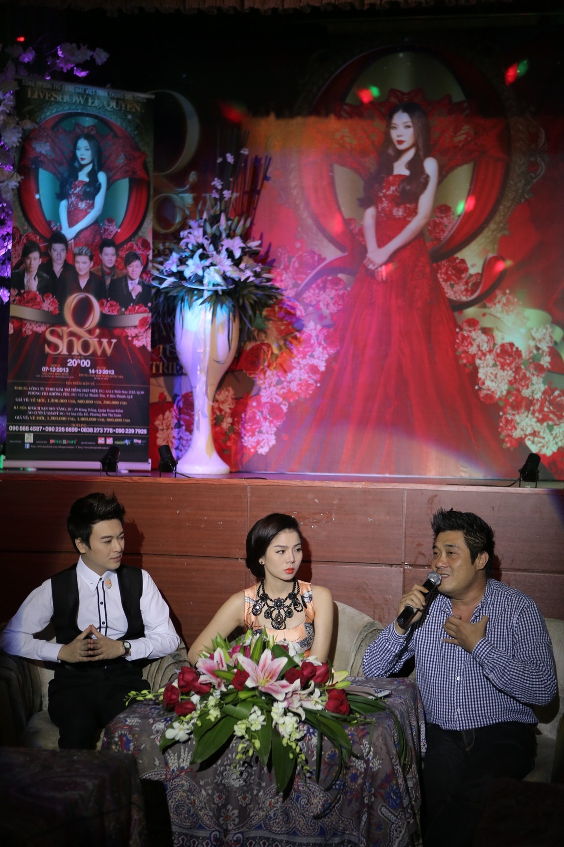 | Lệ Quyên và đạo diễn Trần Vi Mỹ cùng ca sĩ/MC Phan Anh trong buổi họp báo giới thiệu Q Show ở Hà Nội. |