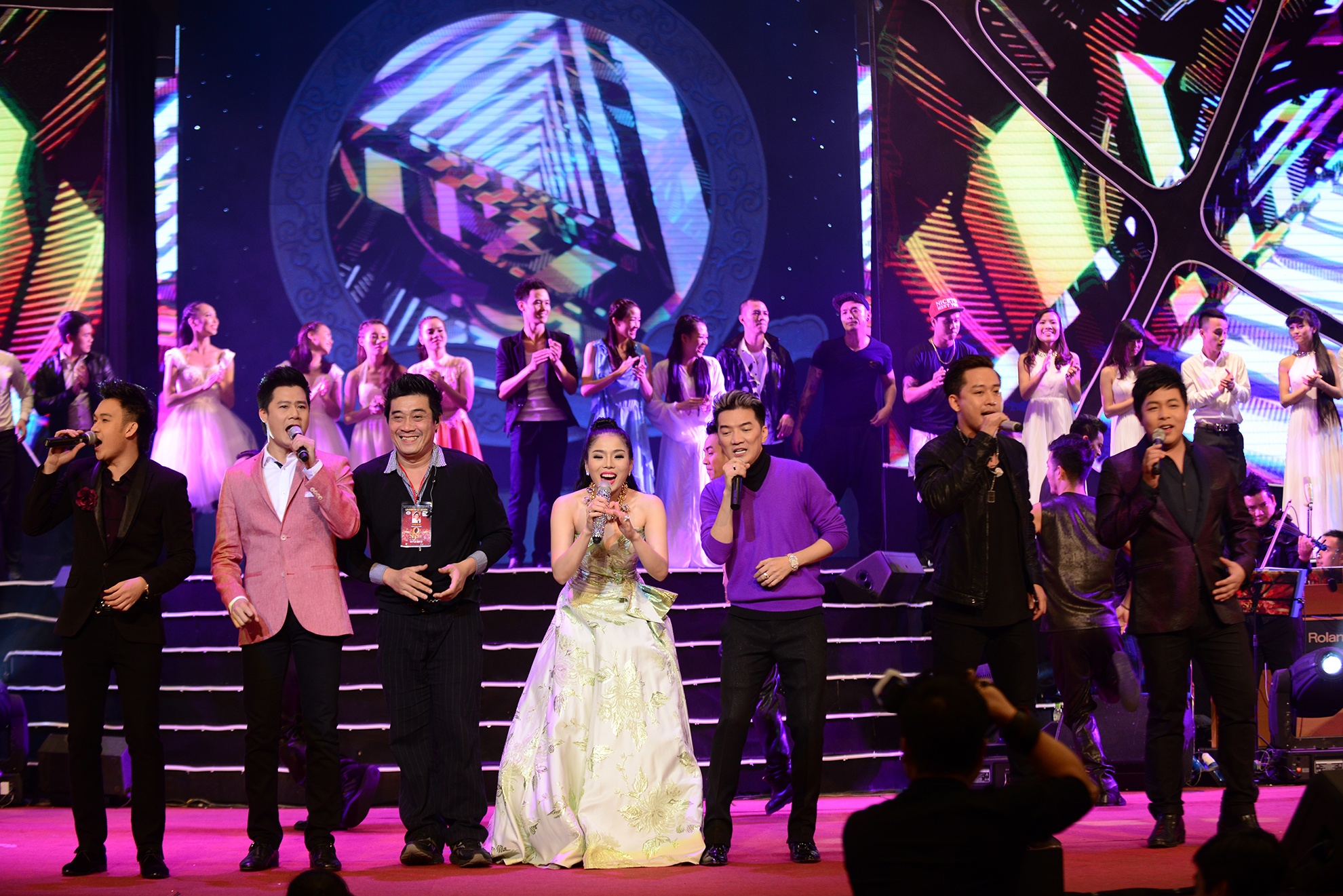 | Đêm nhạc kết thúc vào lúc đồng hồ đã ngấp nghé 12h đêm nhưng 3000 khán giả vẫn nán lại để lắng nghe Lệ Quyên và 5 quý ông của mình cùng hòa giọng trong ca khúc Hãy trả lời em. |