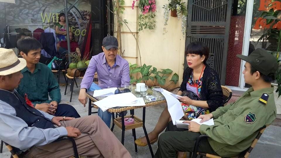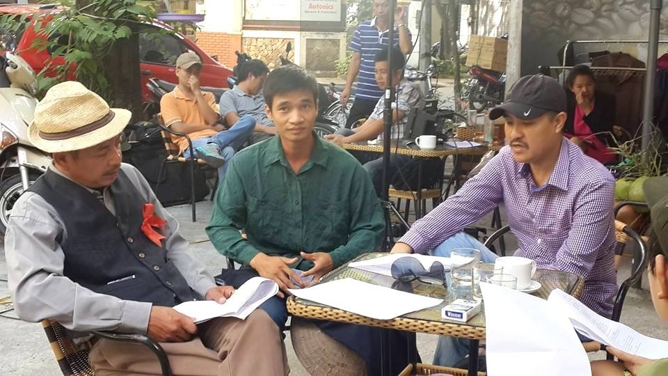 | Đức Hậu (Lệ Rơi) thảo luận lại kịch bản cùng đạo diễn Quốc Quân. |