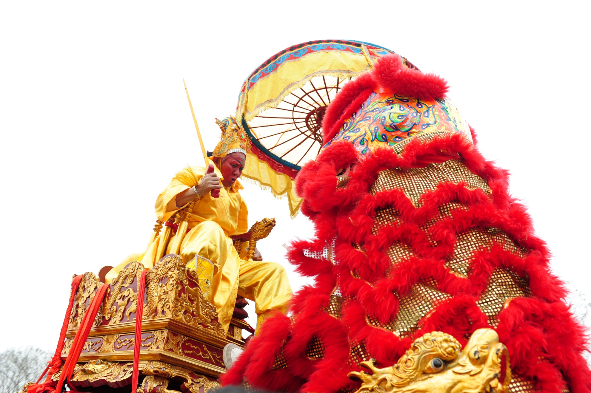 Điểm mới của lễ hội năm nay là sự góp mặt của các chú lân với những màn nhảy lên cao đẹp mắt. |