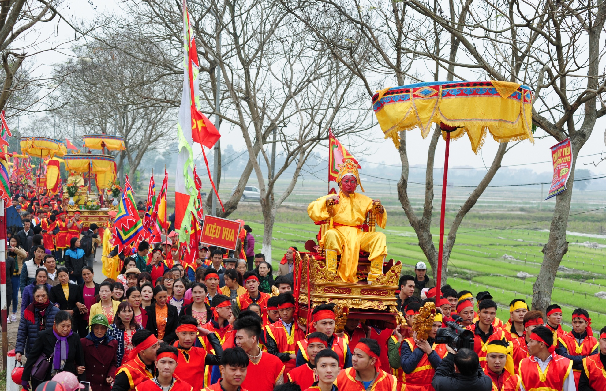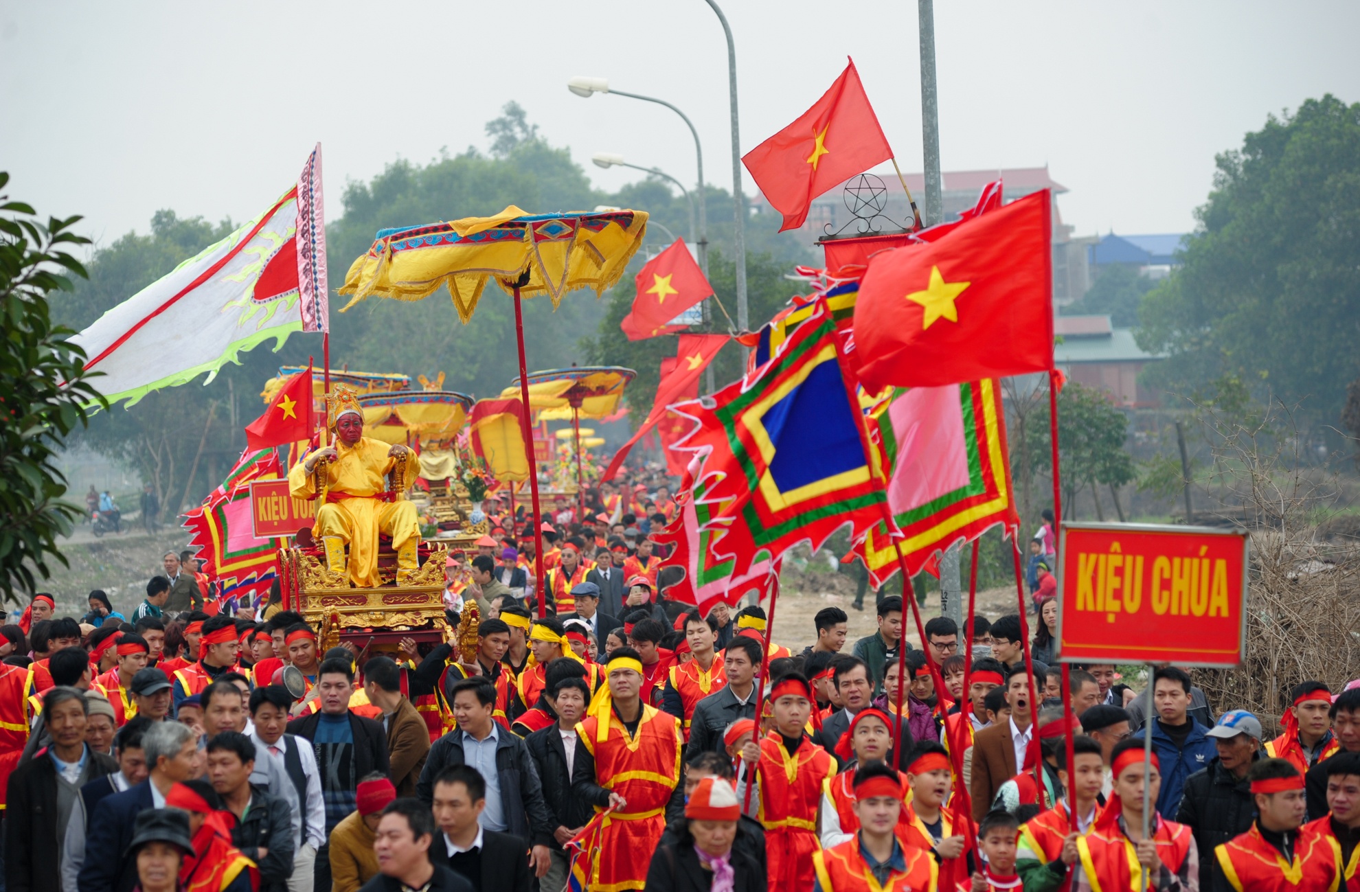 Buổi sáng, vua và chúa được rước từ đình về đền Sái. Năm nào, lễ hội cũng thu hút hàng nghìn người tham dự. |