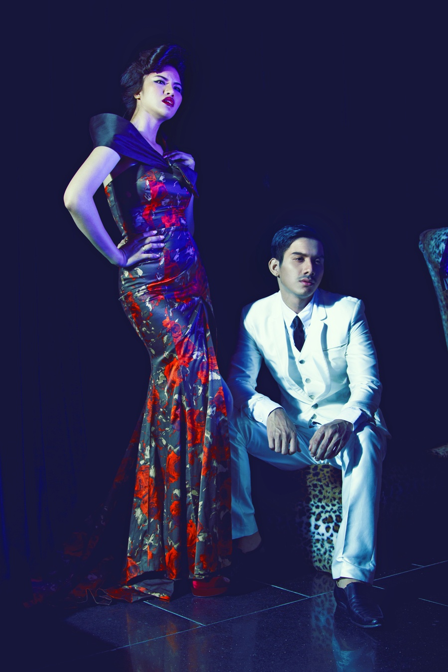 | Trang phục dạ hội sang trọng và huyền bí với gam màu trầm, chất liệu nhung. |