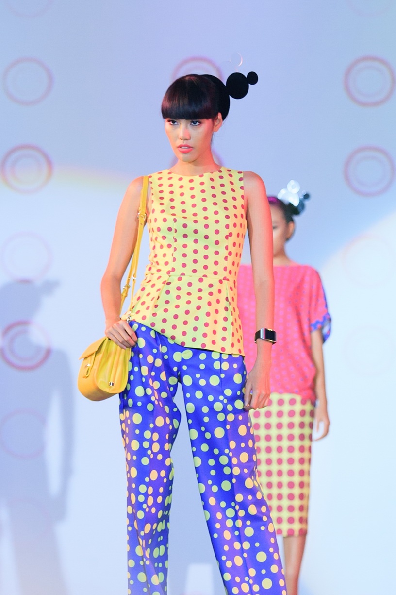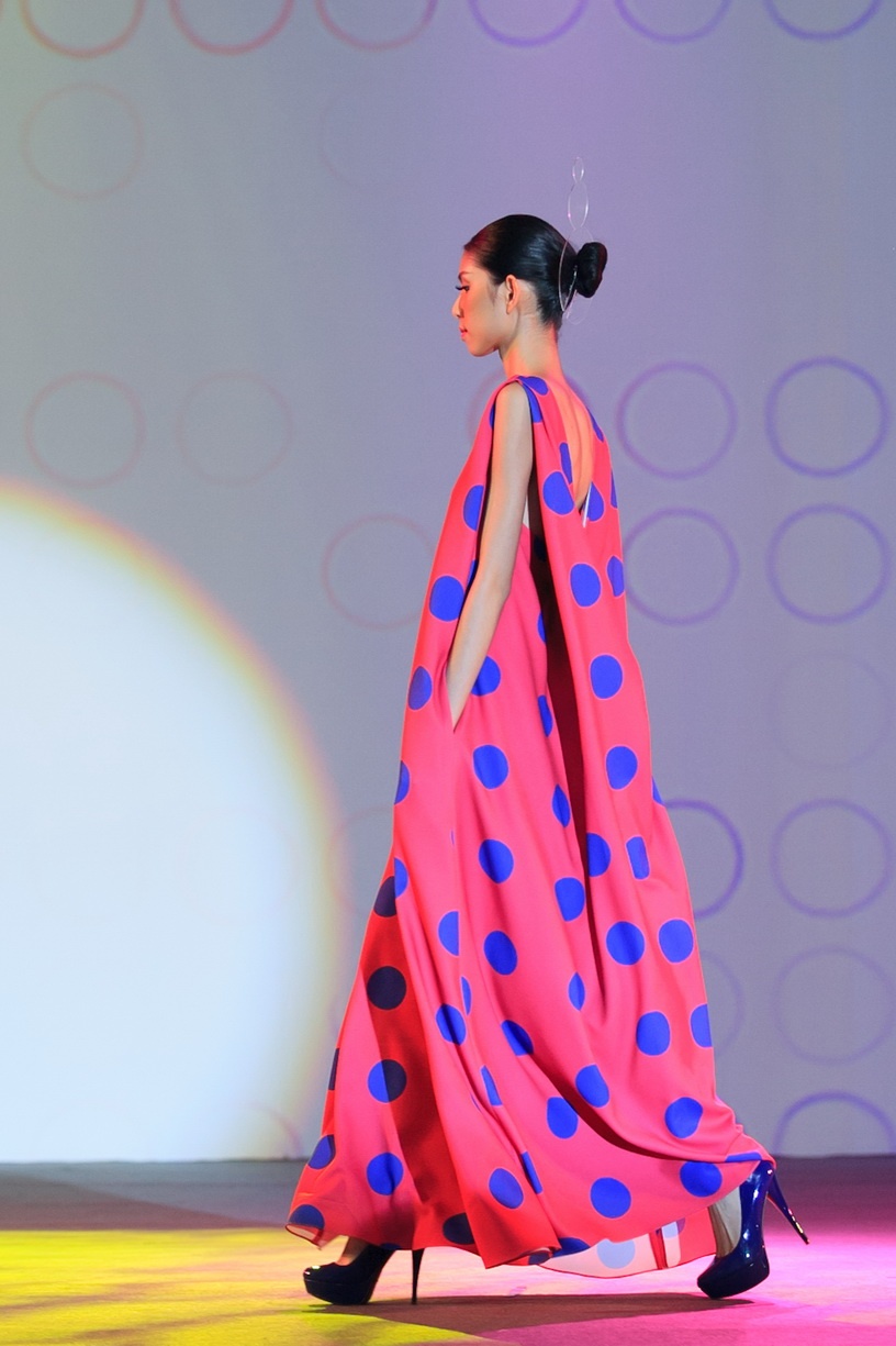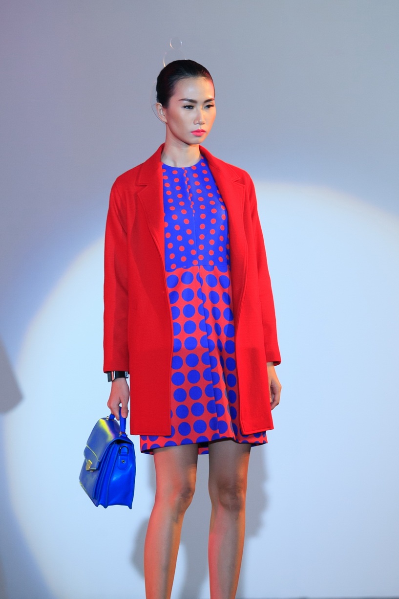 Cách đây 2 năm chấm bi đã được Đỗ Mạnh Cường lăng xê trong mùa xuân hè 2011, được rất nhiều khách hàng say mê và trở thành trào lưu vào thời điểm đó. Tái sử dụng chấm bi trong BST này, NTK chọn chất liệu cứng cáp phù hợp với tiết trời thu đông.