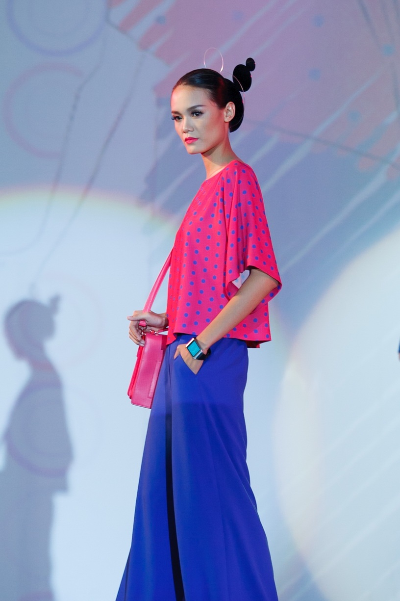 Tối 20/9, Lê Thúy, Hoàng Thùy góp mặt trong màn diễn BST mới của NTK Đỗ Mạnh Cường. Anh cho ra mắt những thiết kế mùa thu với phong cách ứng dụng thường thấy. BST có họa tiết chính là chấm bi, tông màu chủ đạo là xanh, đỏ, vàng, hồng rực rỡ.