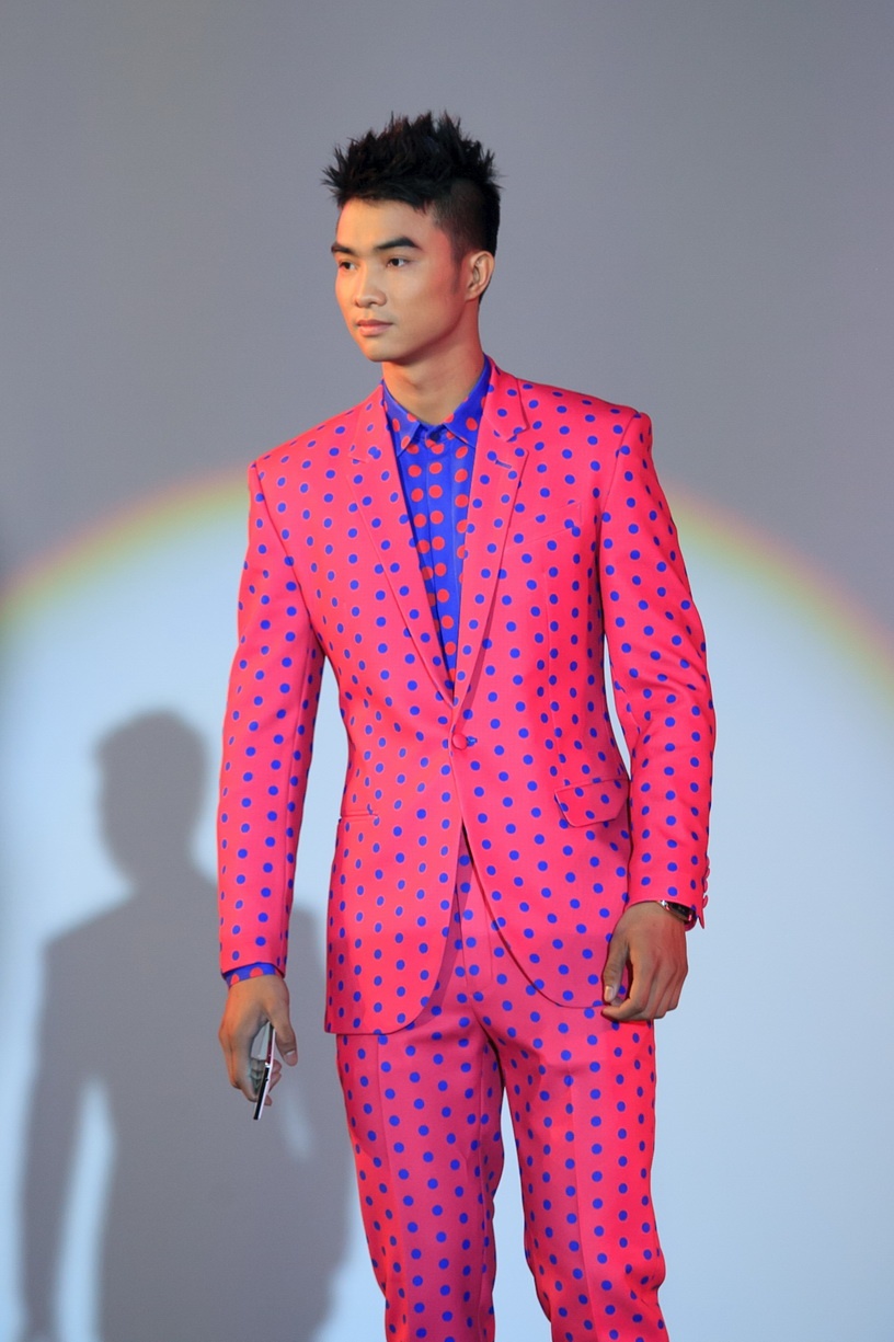 Thiết kế chấm bi dành cho nam có tông màu hồng nổi bật, họa tiết chấm bi nhỏ phù hợp với các chàng trai đỏm dáng.