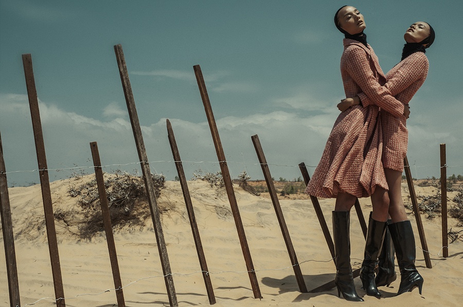 | Người mẫu Lê Thúy cùng Thanh Thảo kết hợp thể hiện BST thu đông mới của NTK Đỗ Mạnh Cường. Cả hai có buổi làm việc cùng ê-kíp hình ảnh tại đồi cát vắng vẻ ở Phan Thiết. |