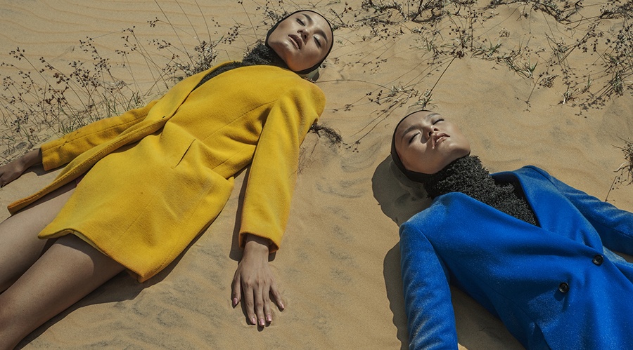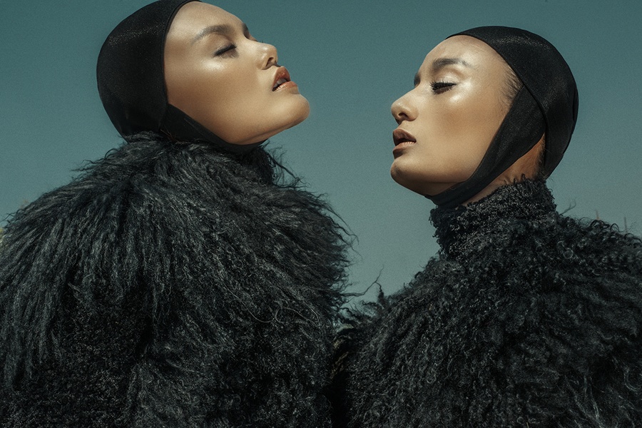 | Cặp bạn thân hóa thân với hình tượng người mẫu sinh đôi, đúng với chủ đề show diễn thu đông sắp diễn ra của NTK Đỗ Mạnh Cường. |
