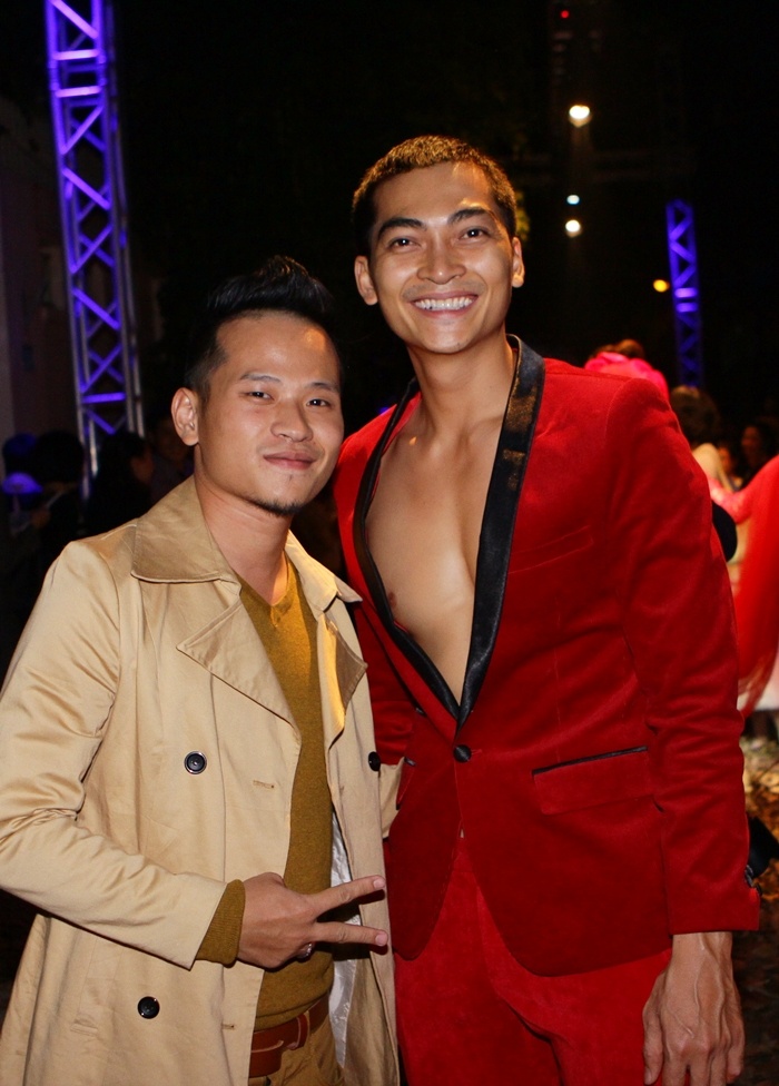 | Khương Ngọc và chuyên gia trang điểm Hoàn Khang. Hoàn Khang và ê-kíp của mình đã phù phép để các nghệ sĩ có những gương mặt ấn tượng trên sàn diễn. |