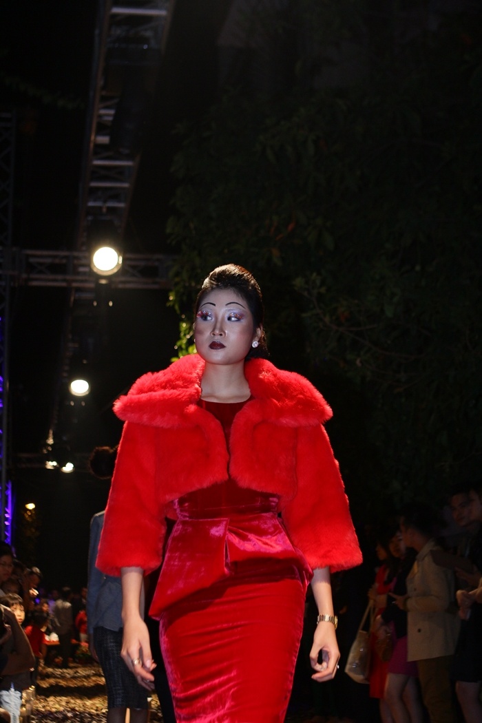 | Lê Thúy với gương mặt lạnh lùng và những bước đi tự tin. |