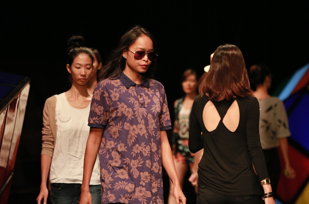 | Người mẫu Lâm Thu Hằng cũng là một trong những gương mặt quen thuộc, tham gia trình diễn Elle Fashion Show hàng năm. Chân dài da nâu chọn áo thun có cổ tối màu, mix kèm quần jeans rách bụi phủi và thoải mái khi tập luyện cùng các đồng nghiệp. |