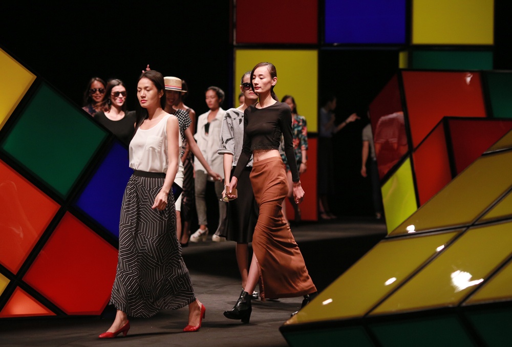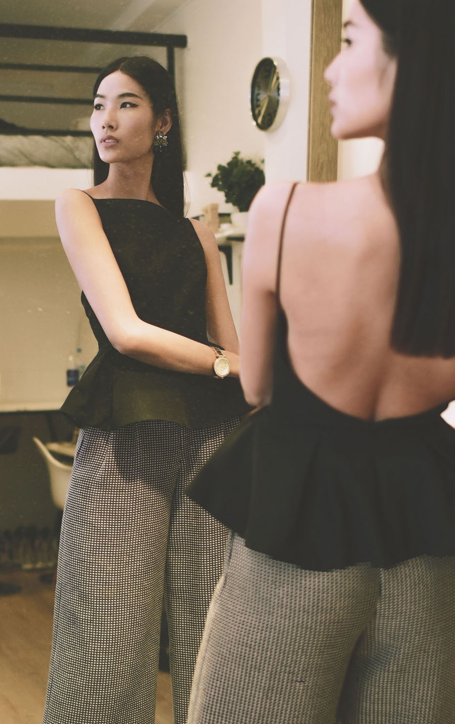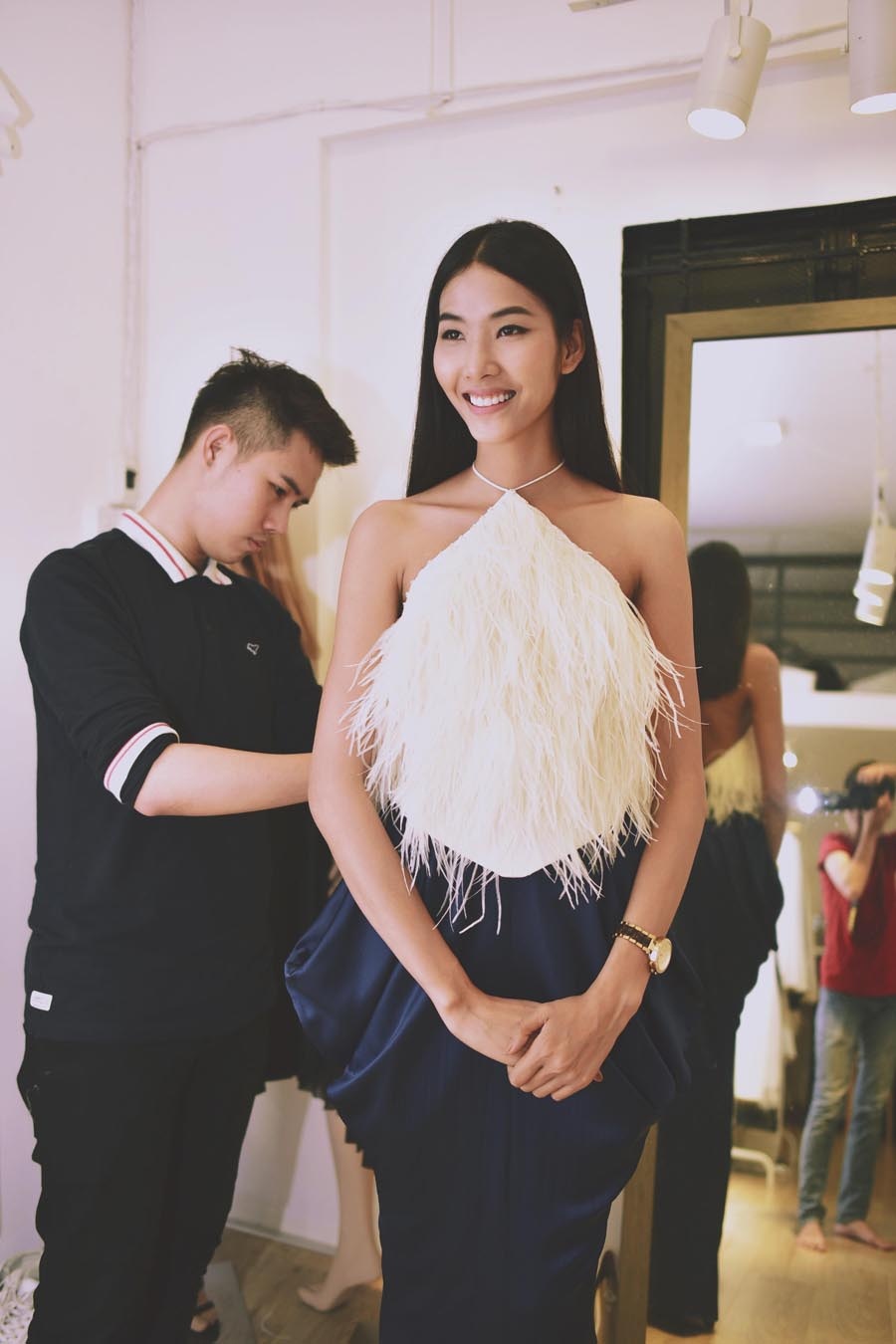 | Nữ người mẫu thử rất nhiều trang phục nằm trong BST của nhà thiết kế trưởng thành từ Project Runway Vietnam 2013. |