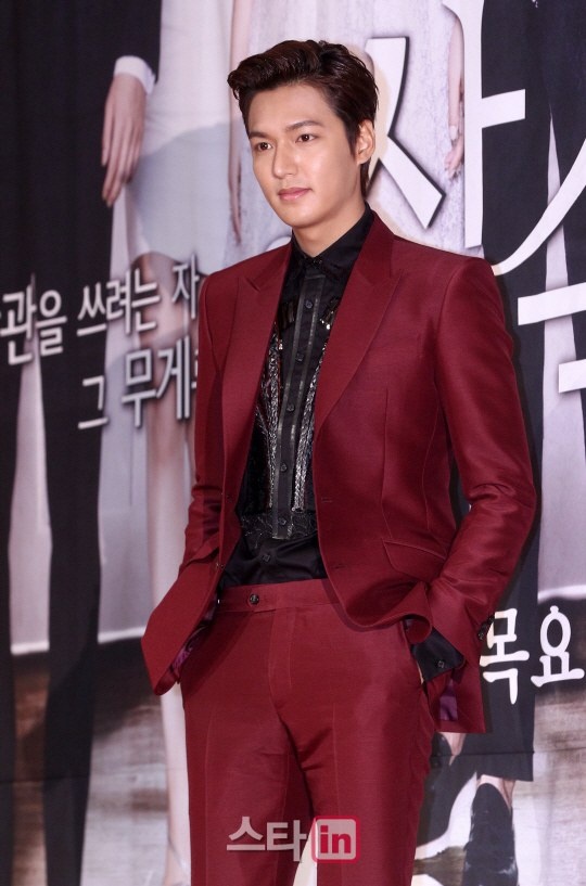 Xuất hiện tại buổi họp báo "The Heirs" với bộ vest màu đỏ đun, Lee Min Ho nhanh chóng trở thành gương mặt thu hút sự chú ý đặc biệt của cánh phóng viên xứ Hàn.