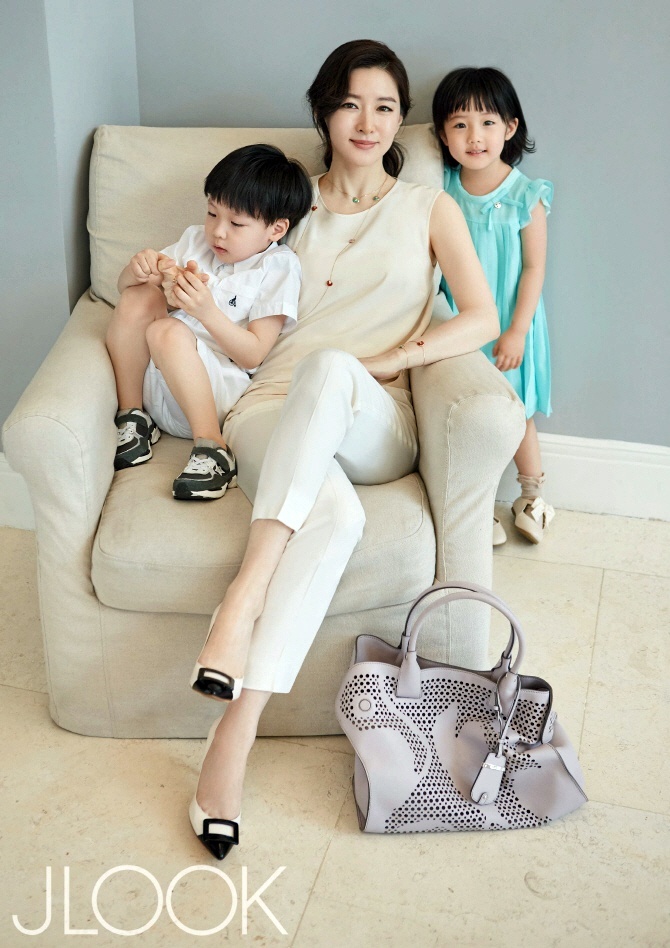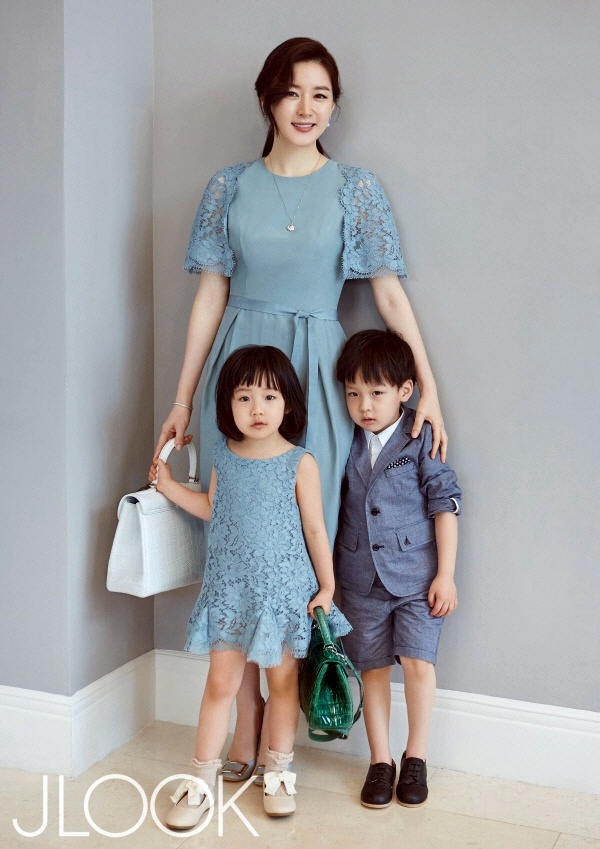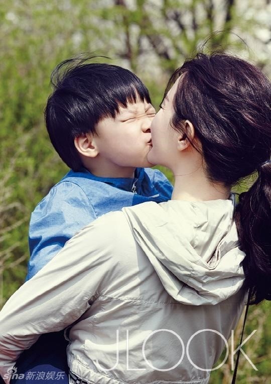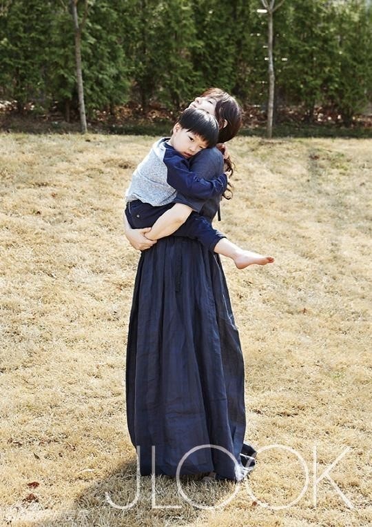 | Trên ấn phẩm JLOOK, Lee Young Ae bế bồng con trai vừa tròn 5 tuổi.