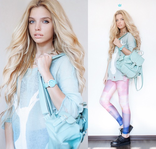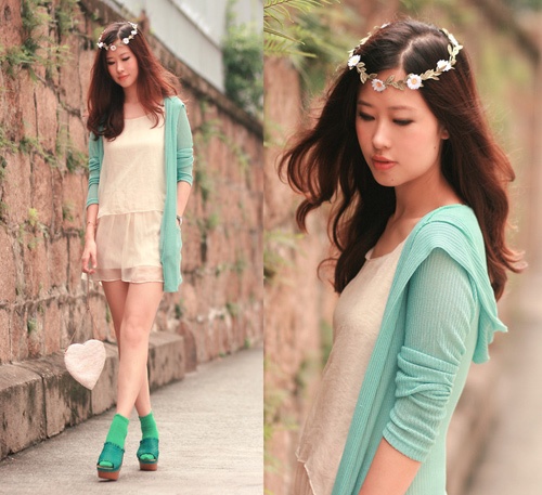Thêm một cách mix đáng yêu với tông xanh bạc hà và nude duyên dáng.