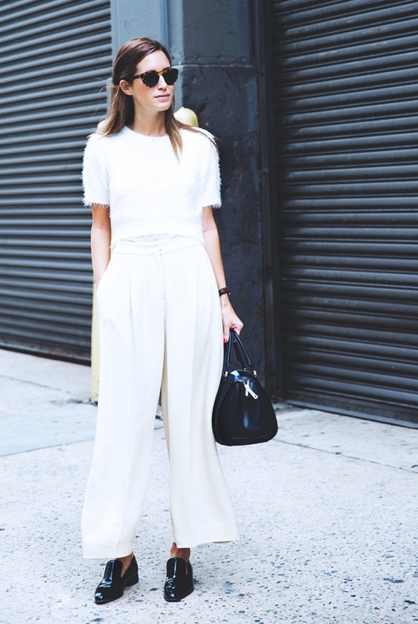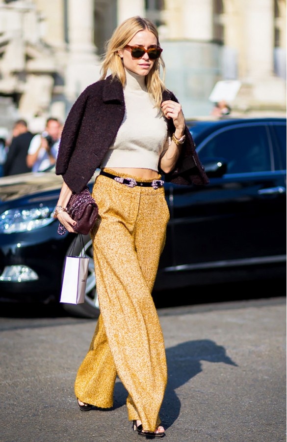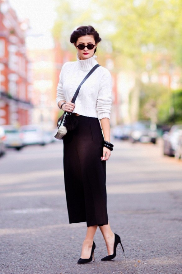 | Thêm một gợi ý cho quý cô thanh lịch với quần ống rộng và mốt áo len croptop. |