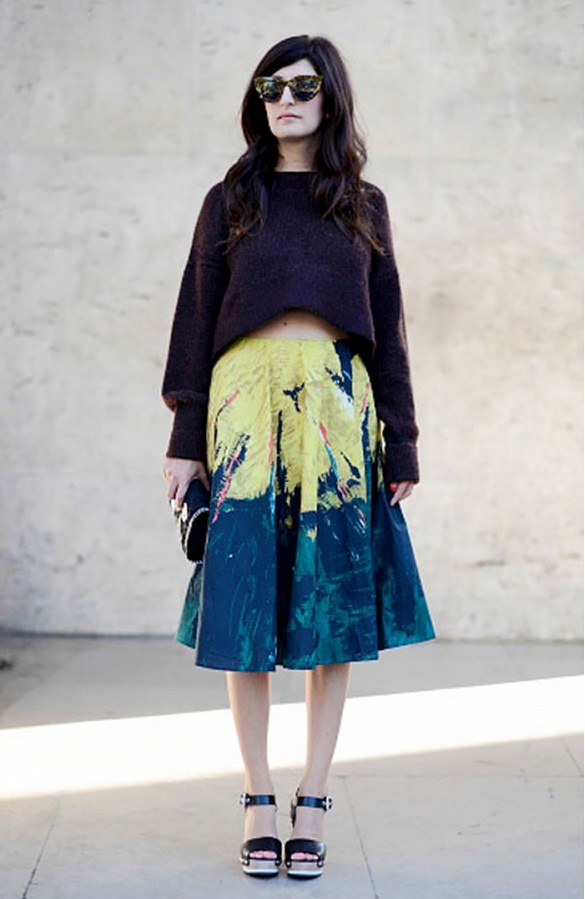| Áo len lửng và váy xòe là cặp đôi hoàn hảo cho ngày lạnh mùa đông. |