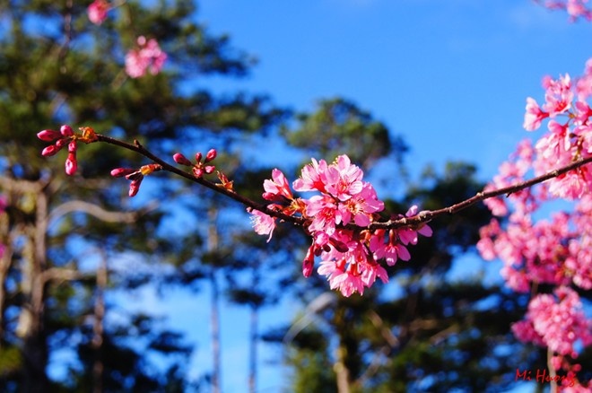 | Cuối tháng 2, hoa mai anh đào nở rộ đường Hòa Bình (gần chợ Đà Lạt) đường Trần Hưng Đạo. Ảnh: Mi Hương. |