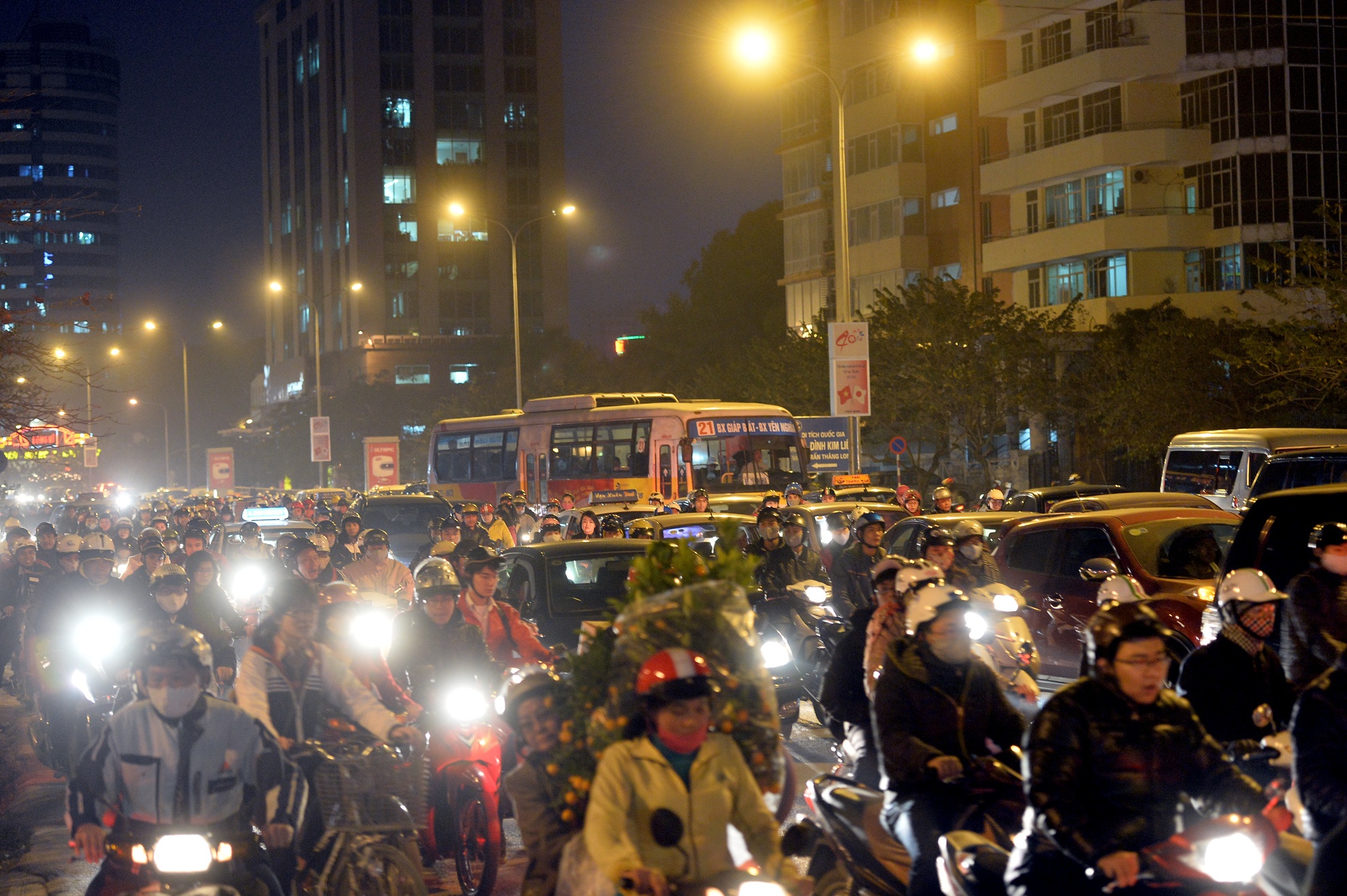 Giờ tan tầm tối 21/1, nhiều tuyến bị rơi vào cảnh ùn ứ.
