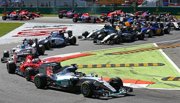 | Nhờ lợi thế giành pole, Hamilton không gặp nhiều khó khăn để bảo toàn vị trí dẫn đầu sau vạch xuất phát. |