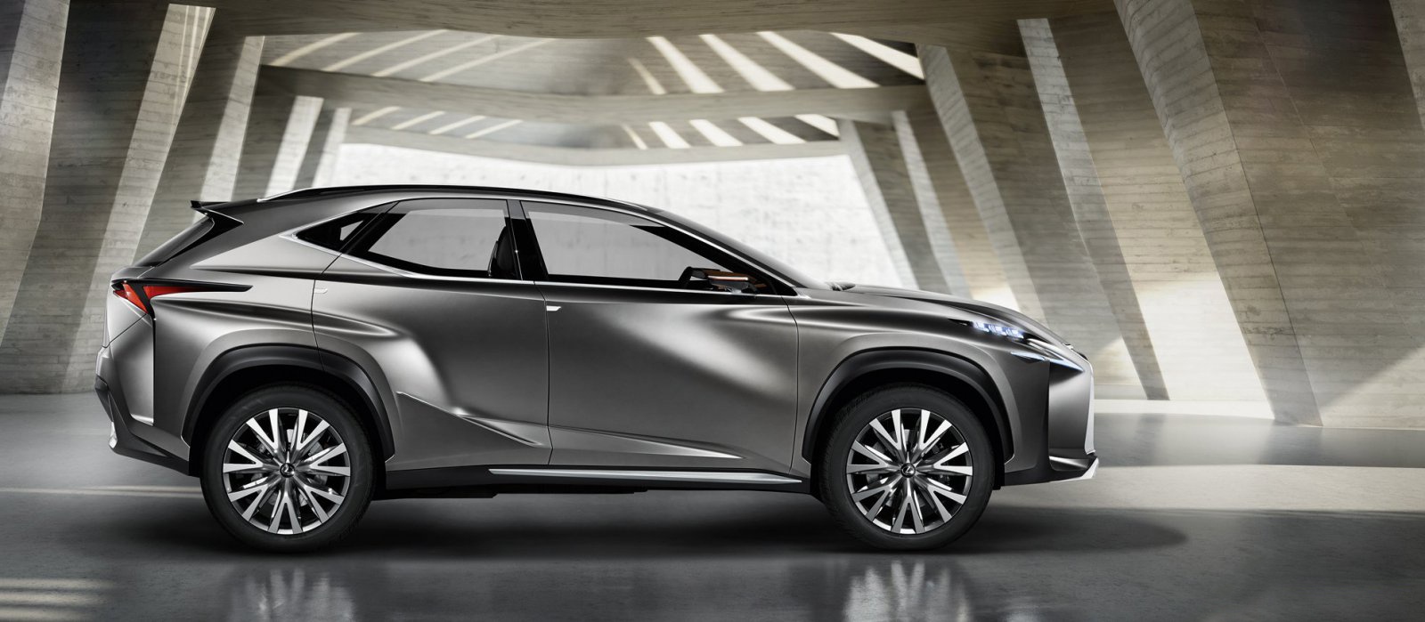 Những đường nét thiết kế đầy góc cạnh xuất hiện trên toàn bộ thân xe, mang lại kiểu dáng hầm hố, cứng cáp và mạnh mẽ cho LF-NX concept. Toàn bộ thân xe được phủ lớp sơn màu bạc.