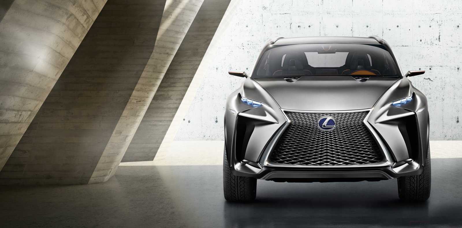 LF-NX concept sở hữu xu hướng thiết kế mới nhất của Lexus, với lưới tản nhiệt kiểu dáng hiện đại, phong cách ấn tượng của cụm đèn pha và dải đèn LED chạy ban ngày độc lập. Ngoài ra, hai hốc gió lớn phía trước cũng góp phần tạo nên sự hầm hố cho LF-NX.