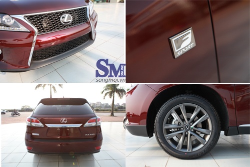 Chiếc Lexus RX350 F-Sport màu đỏ cafe cháy này được sản xuất trong năm 2013 và nhập khẩu về từ Mỹ. Có thiết kế tương tự những chiếc Lexus RX350 “facelift” không chính hãng về nước đợt cuối năm như mặt tản nhiệt hình chữ X mở rộng, đèn pha thêm dải LED chiếu sáng ban ngày…, bản F-Sport có điểm khác ở cách thể hiện lưới tản nhiệt, mâm xe lớn hơn, lo-go F-Sport ở hai bên hông.