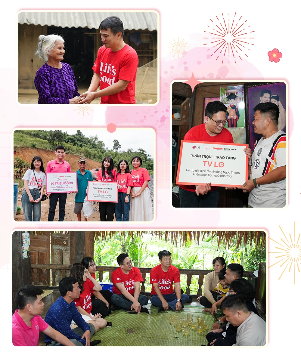 Những niềm mong mỏi của ông Tráng, ông Chuyển và anh Thanh, chị Hoa đã thành hiện thực khi có TV mới từ LG. Đồng hành cùng Quỹ “Vì tầm vóc việt” và báo Nông thôn ngày nay, LG Electronics đã trao tặng 40 TV đến những gia đình chịu thiệt hại nặng nề do bão Yagi trên địa bàn tỉnh Yên Bái. Đây là một hoạt động thuộc chiến dịch thường niên mang tên “Tết Nhà là Tết Nhất” do LG triển khai từ năm 2023.
