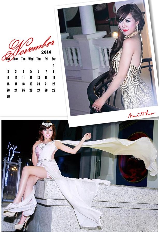 | Trong tháng 11 và tháng 12, cô nàng diện váy dạ hội sang trọng. Đây là hình ảnh Mai Thỏ muốn hướng tới trong năm 2014. |